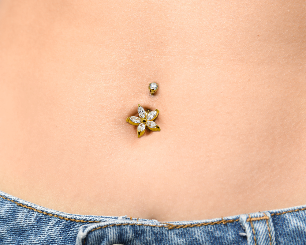 14K Gold Belly Ring Design Navel Piercing with the Highest Quality Crystals Hand Set & Polished Jewellery for someone Very Special