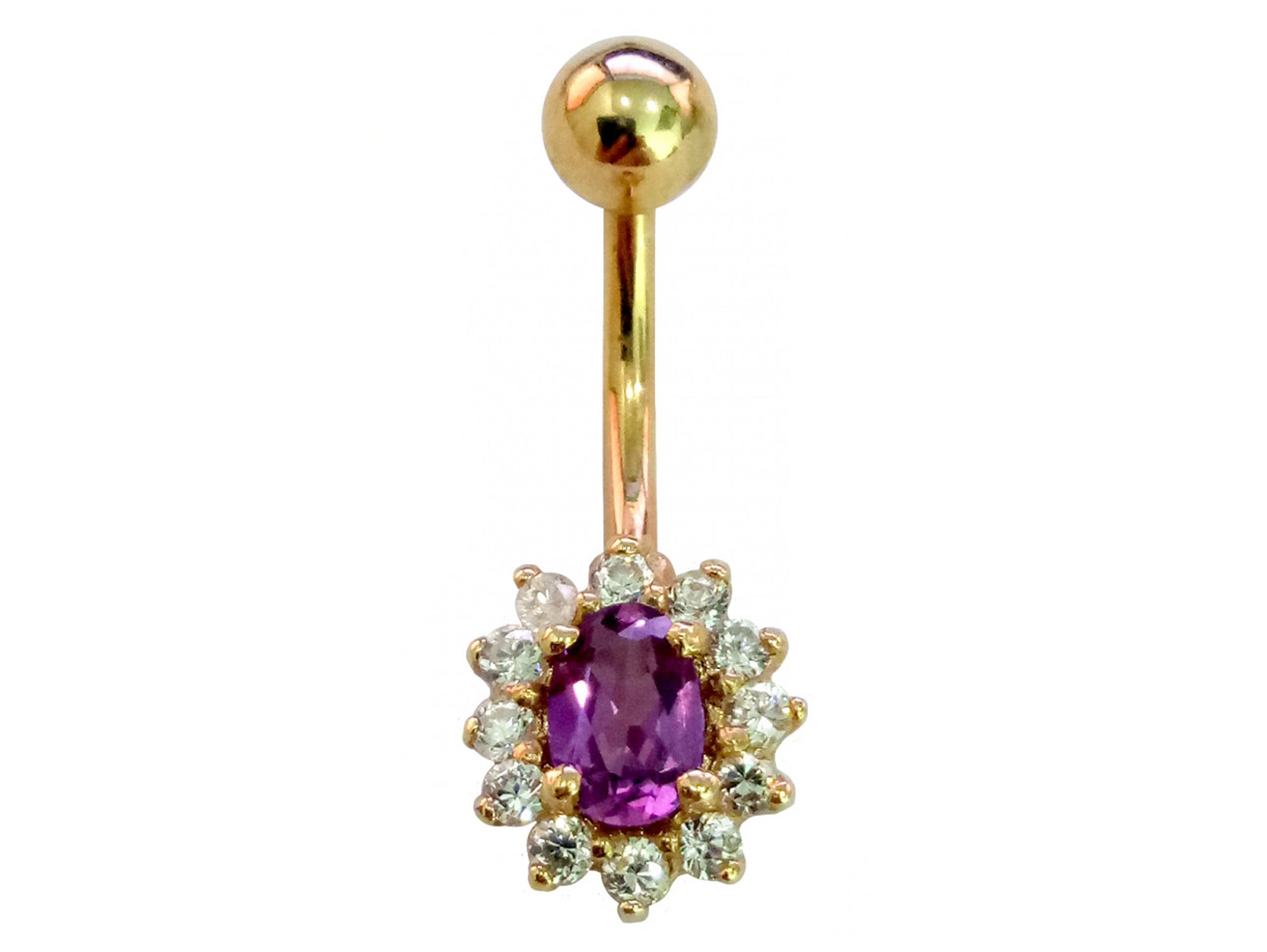 14K Gold Belly Button Ring with real Tanzanite and Amethyst - Hand Set and Hand Polished - Solid Gold - Fine Jewellery Quality