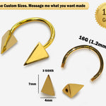 14K Gold Septum Horseshoe Barbell Pyramid Spike, Septum ring, Lip Piercing - 16G Body Jewellery Gold Nose Ring