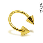 14K Solid Gold Cone/Spike Helix Cartilage Horseshoe Barbell 18G 16G Piercing for Tragus, Daith, Snug