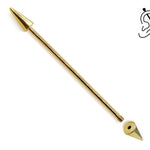 14G (1.6mm) | 14K Solid Gold Cone/Spike Industrial Barbell, Scaffold Piercing Body Jewellery