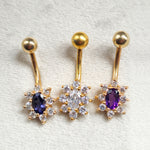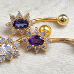 14K Gold Flower Belly Button Ring with Precious Stone Crystal Belly Ring - Belly Bar made of Fine Jewelry Hand Set and Hand Polished