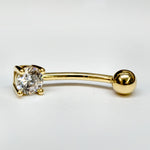 14K Solid Gold Belly Bar ,Belly Button Ring with Crystal Belly Ring - Hand Set and Hand Polished - Gold Body Jewellery