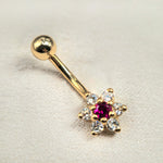 14K Solid Gold Belly Bar with Crystals - Gold Belly Button Ring - Hand Set Hand Polished - Hand made Gold Body Jewelry for someone special