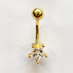 14K Solid Gold Belly Button Ring - Star Shape Crystal Belly Ring - Gold Belly Bar made of 14K Gold - Fine Jewelry Hand Set and Hand Polished