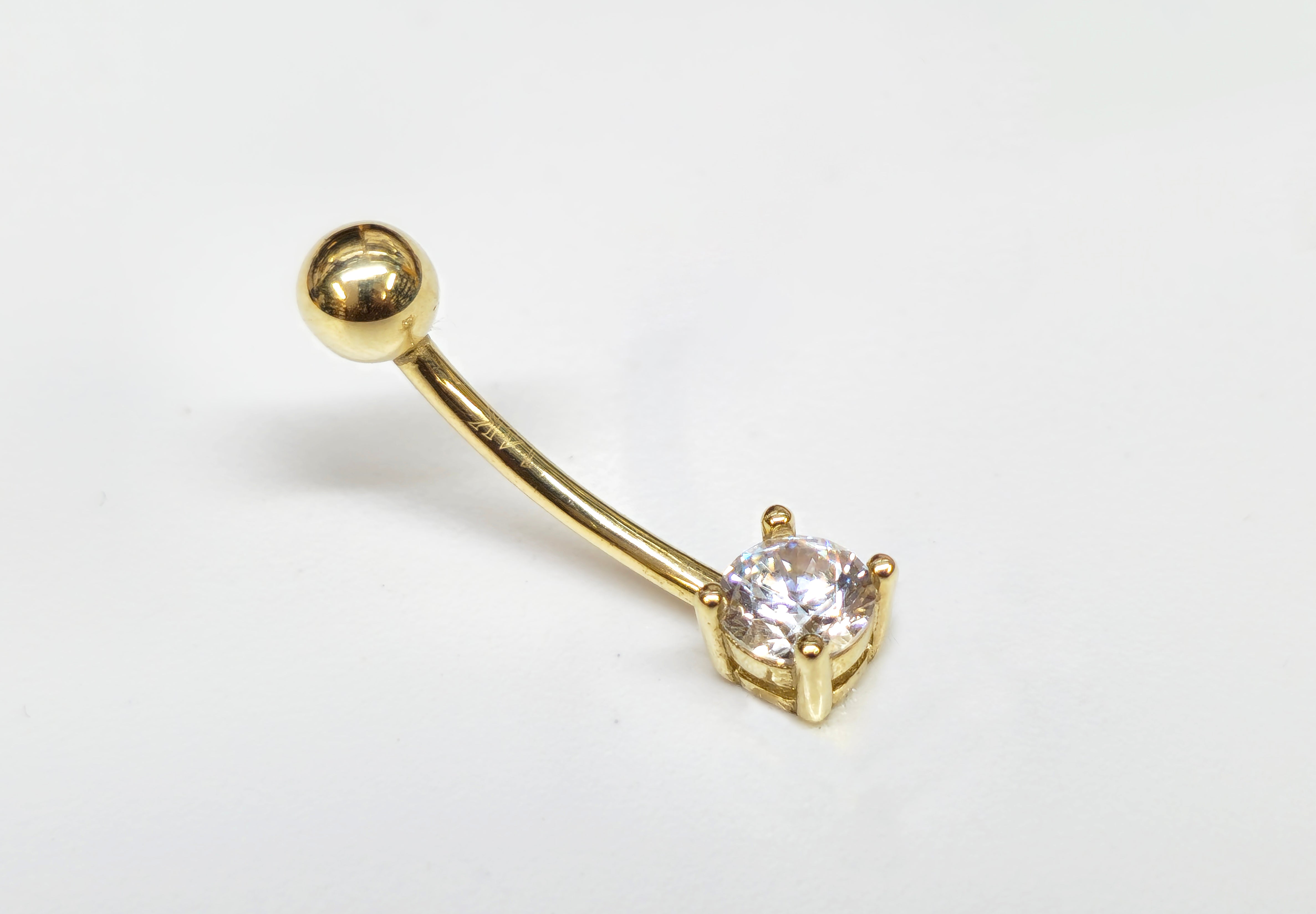 14K Solid Gold Dangle Earrings 16G Curved Barbell with Prong Set CZ Stone - Beautiful Design and Unique Piercing