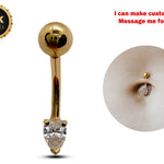 14K Solid Gold Tear Drop Belly Button Ring with Crystal Belly- Hand Made 14K Gold Belly Bar for that very special Person