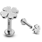 14K White Gold Clover Leaf Tragus Earring, Labret Stud, Helix Cartilage Piercing - Internally Threading Body Jewellery Ear Piercing