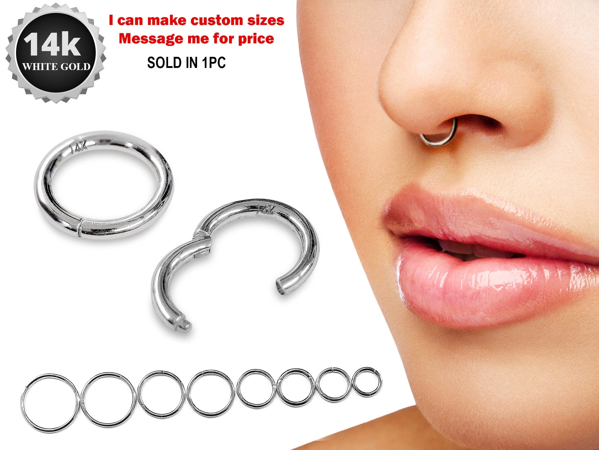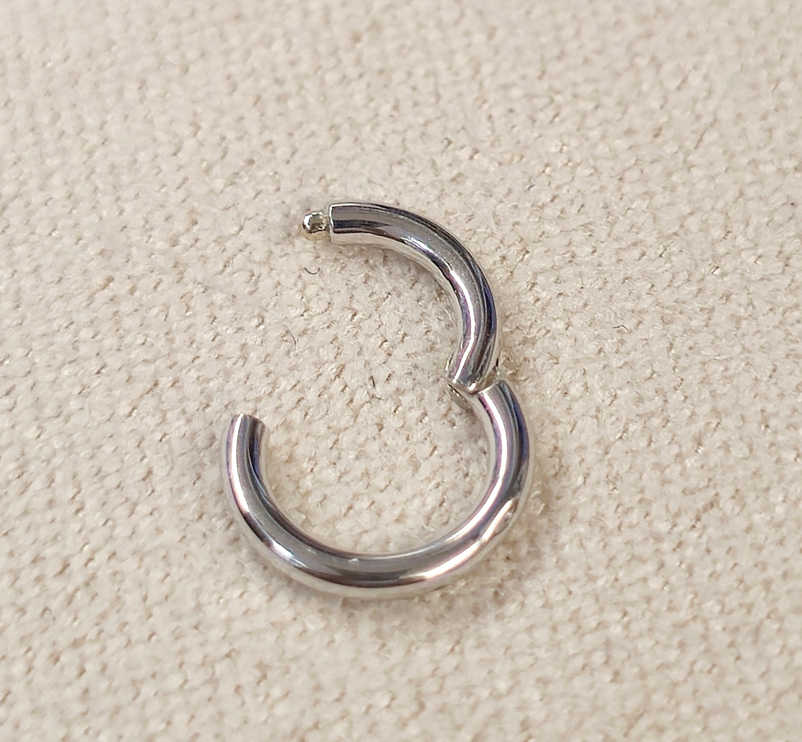 14K White Gold Septum Clicker Hoops Nose Hoop, Lip Piercing Hinged Ring - Body Jewellery - 1pc each order
