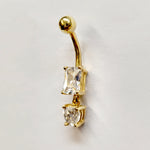 Belly Button Ring Dangle Emerald Cut Crystal Belly Ring - Belly Bar - made of 14K Gold Fine Jewelry Hand Set and Hand Polished
