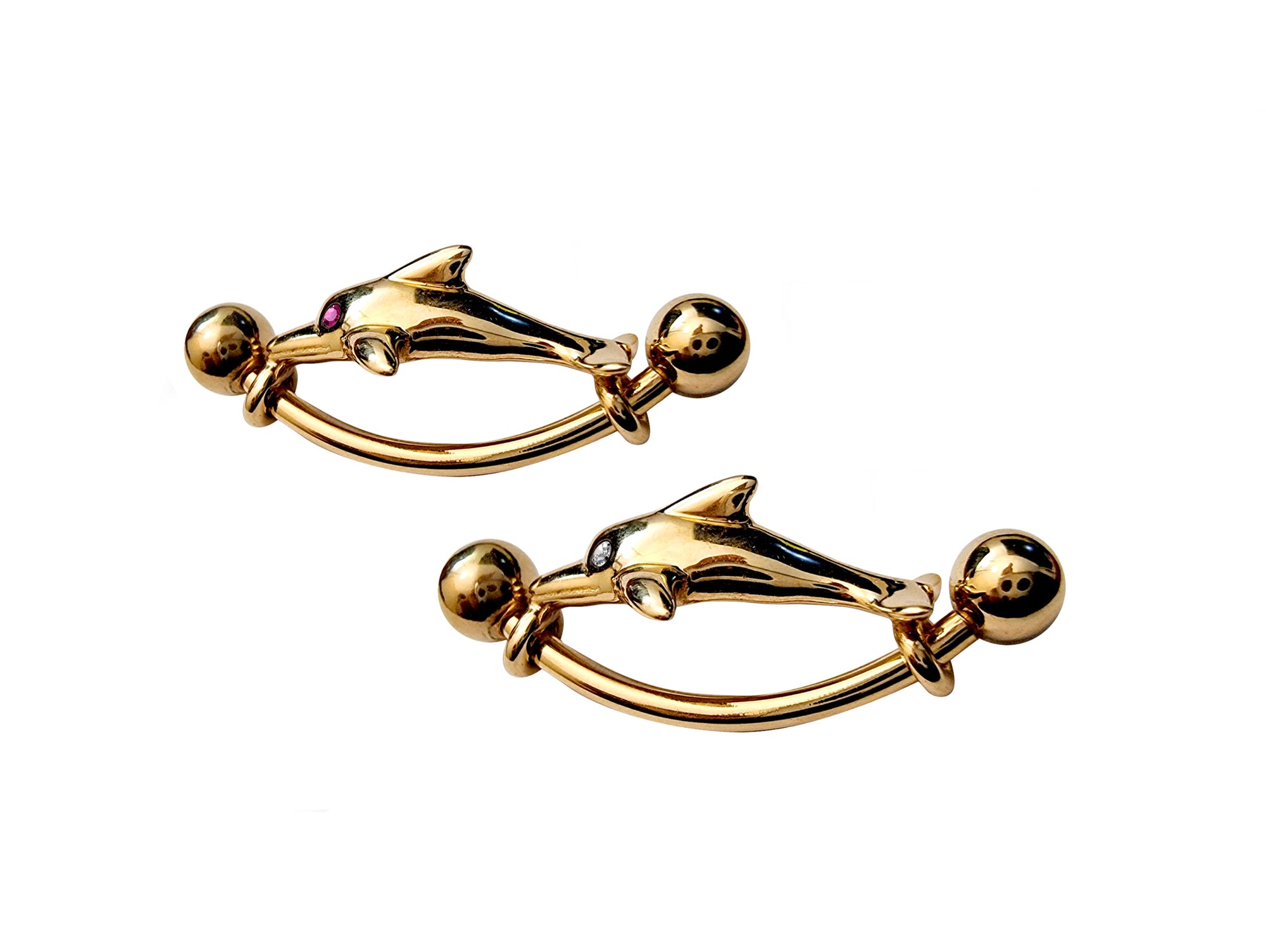 14K Gold Belly Ring - Dolphin Belly Bar, 14G Belly Button Piercing, Navel Jewellery -Hand Made Gold Body Jewellery Rings