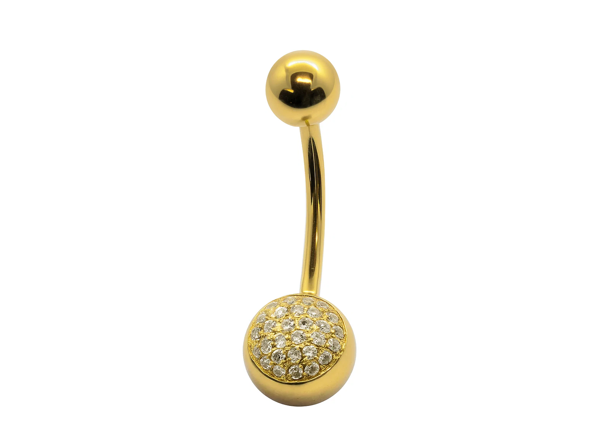14K Solid Gold Belly Button Ring, 16G Belly Bar with Studded Crystals Belly Ring - Hand Set and Hand Polished - Gold Body Jewellery
