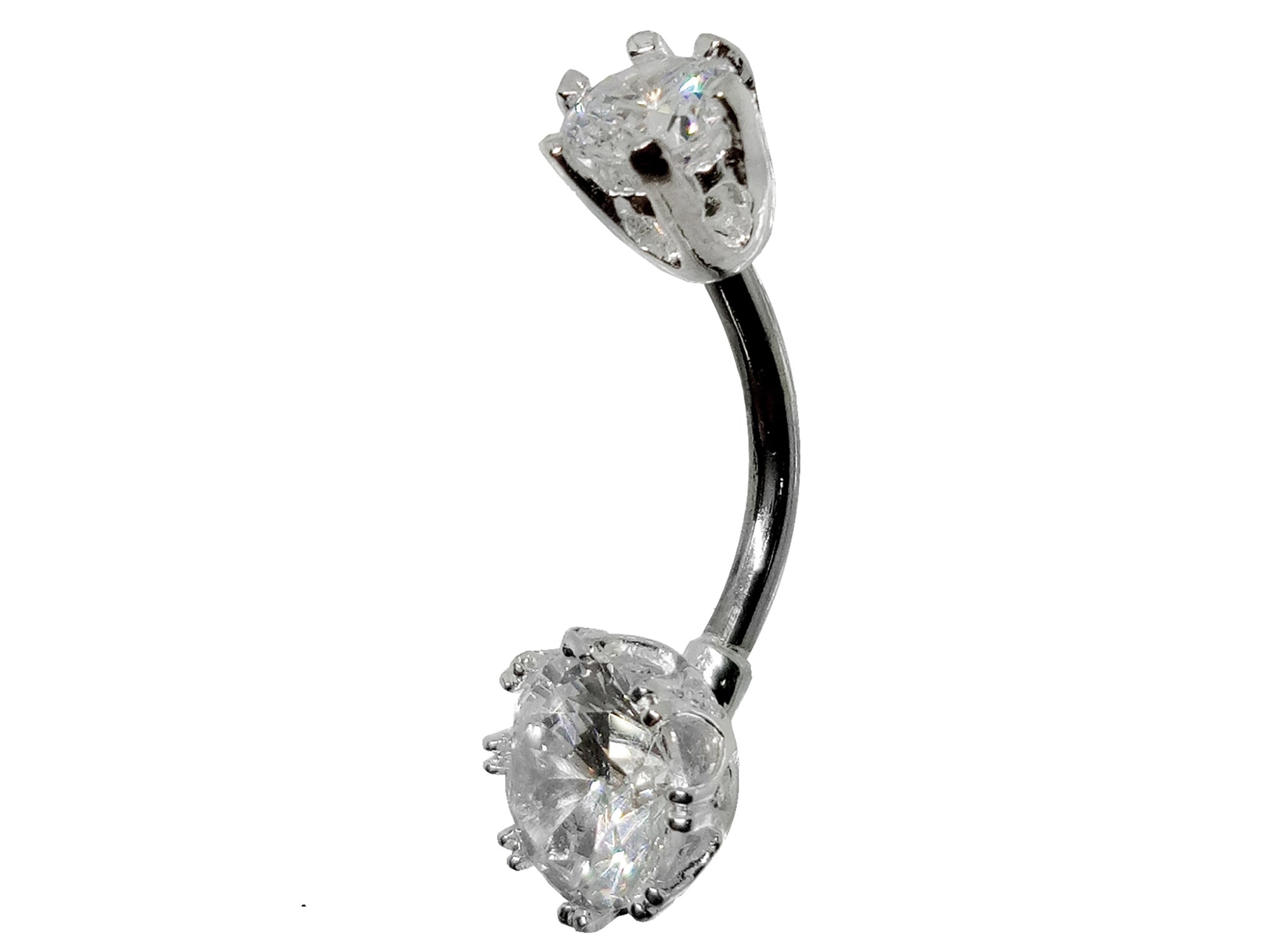 Cute Round Belly Bar, Belly Rings with Center Crystals - Designer Belly Bars - Silver - Belly Button Ring - 14g (1.6mm) Length is 10mm