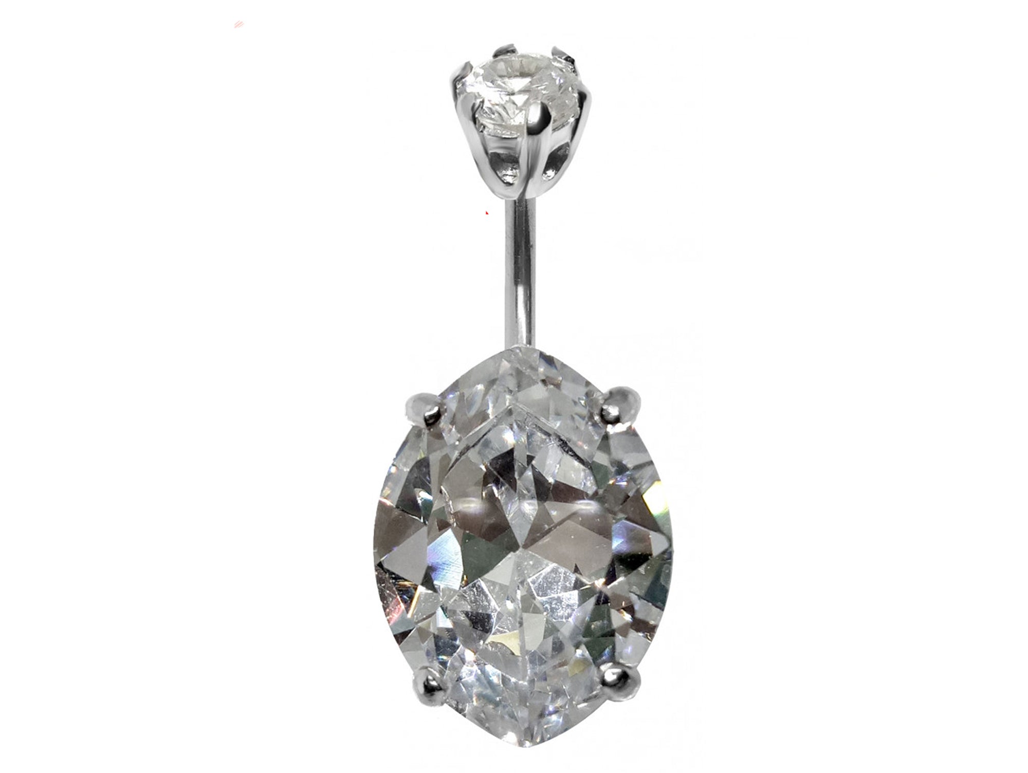 Designer Belly Bars - Silver - Solitaire Marisque Cut CZ Crystals Belly Ring - Navel Ring - 14g (1.6mm) Length is 10mm