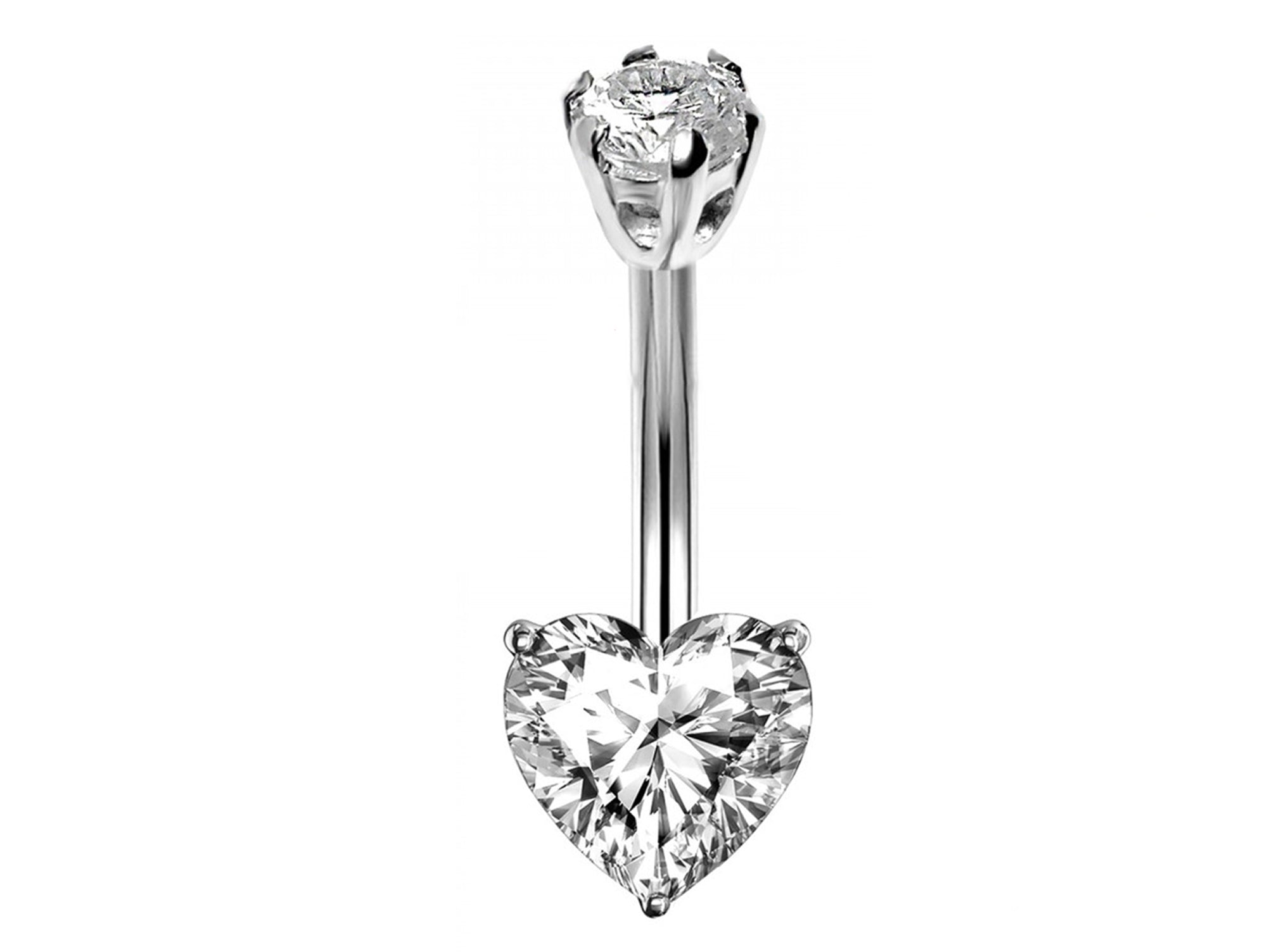 Designer Belly Bars - Silver - Solitaire Cute Heart Belly Ring made of CZ Crystals - Navel Ring - 14g (1.6mm) Length is 10mm