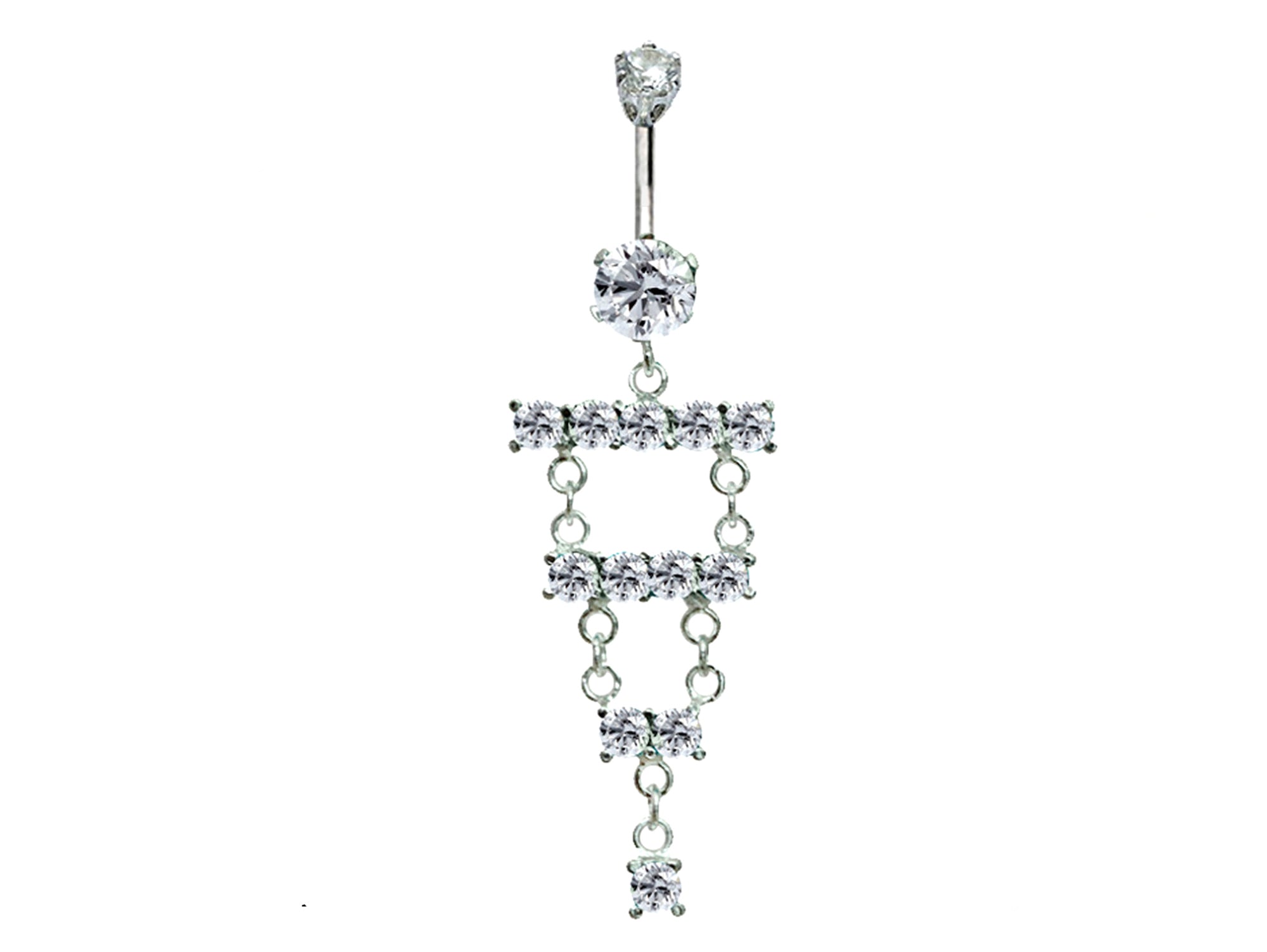 Designer Belly Rings- Silver - Luxury Drop Dangle Chandelier Style Belly Bars with CZ Crystals - Belly Button - 14g (1.6mm) Length is 10mm
