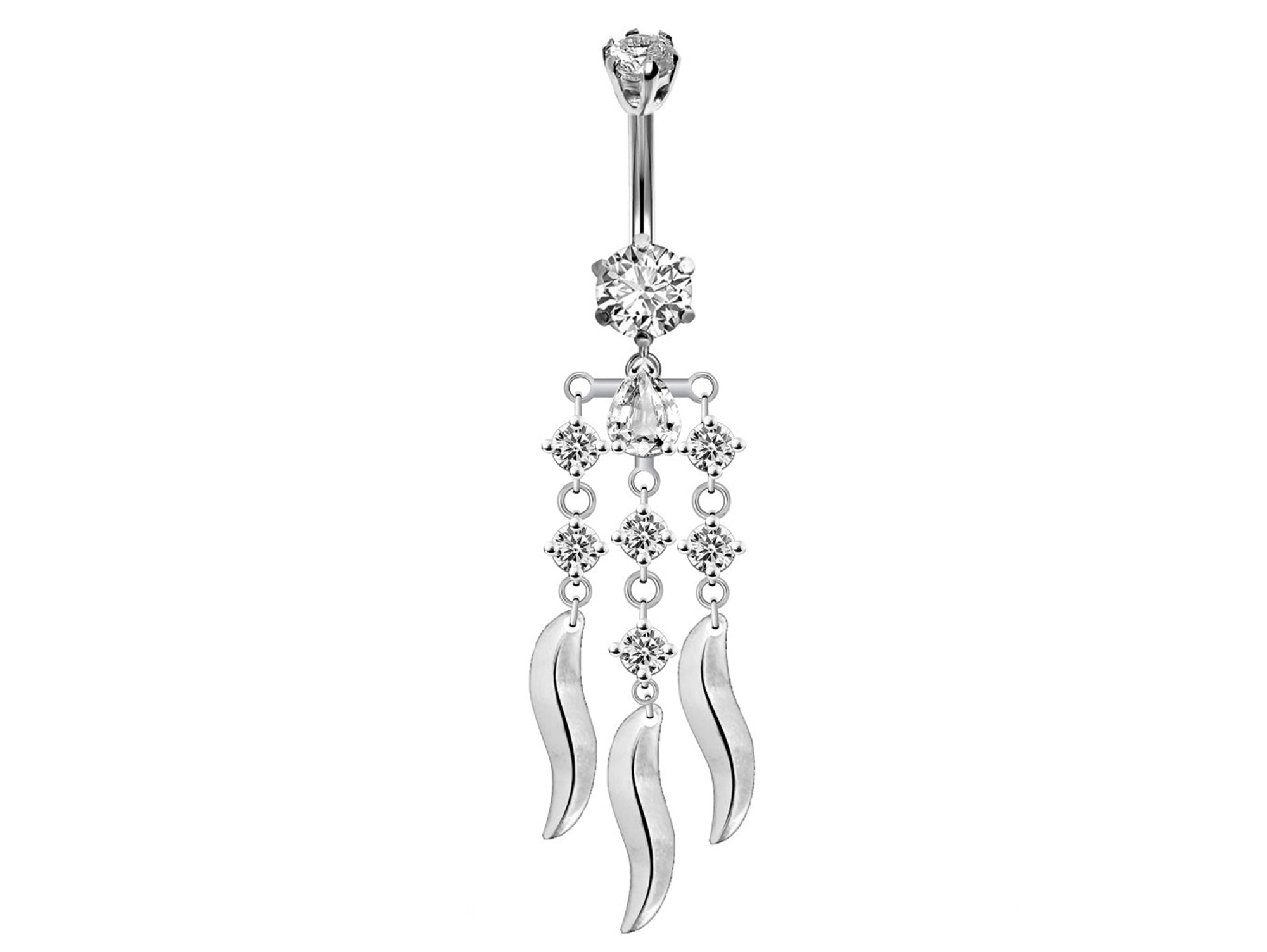 Designer Belly Rings- Silver - Luxury Dangle Chandelier Design Belly Bars with CZ Crystals - Belly Button Ring - 14g (1.6mm) Length is 8mm