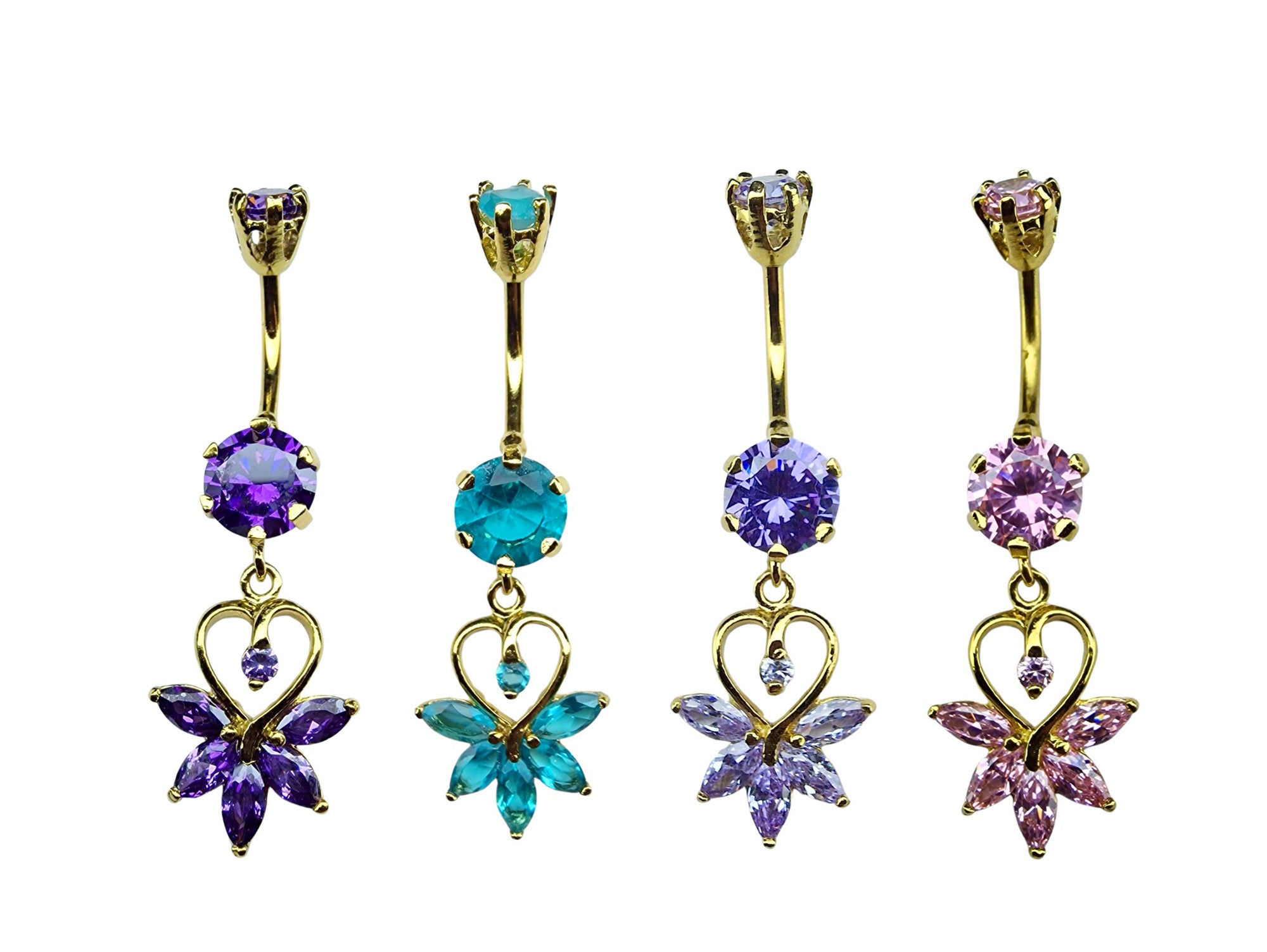 Gold Plated Belly Button Ring - Unique Design Dangly Silver Belly Bar with CZ Crystals - 14G Length is 10mm
