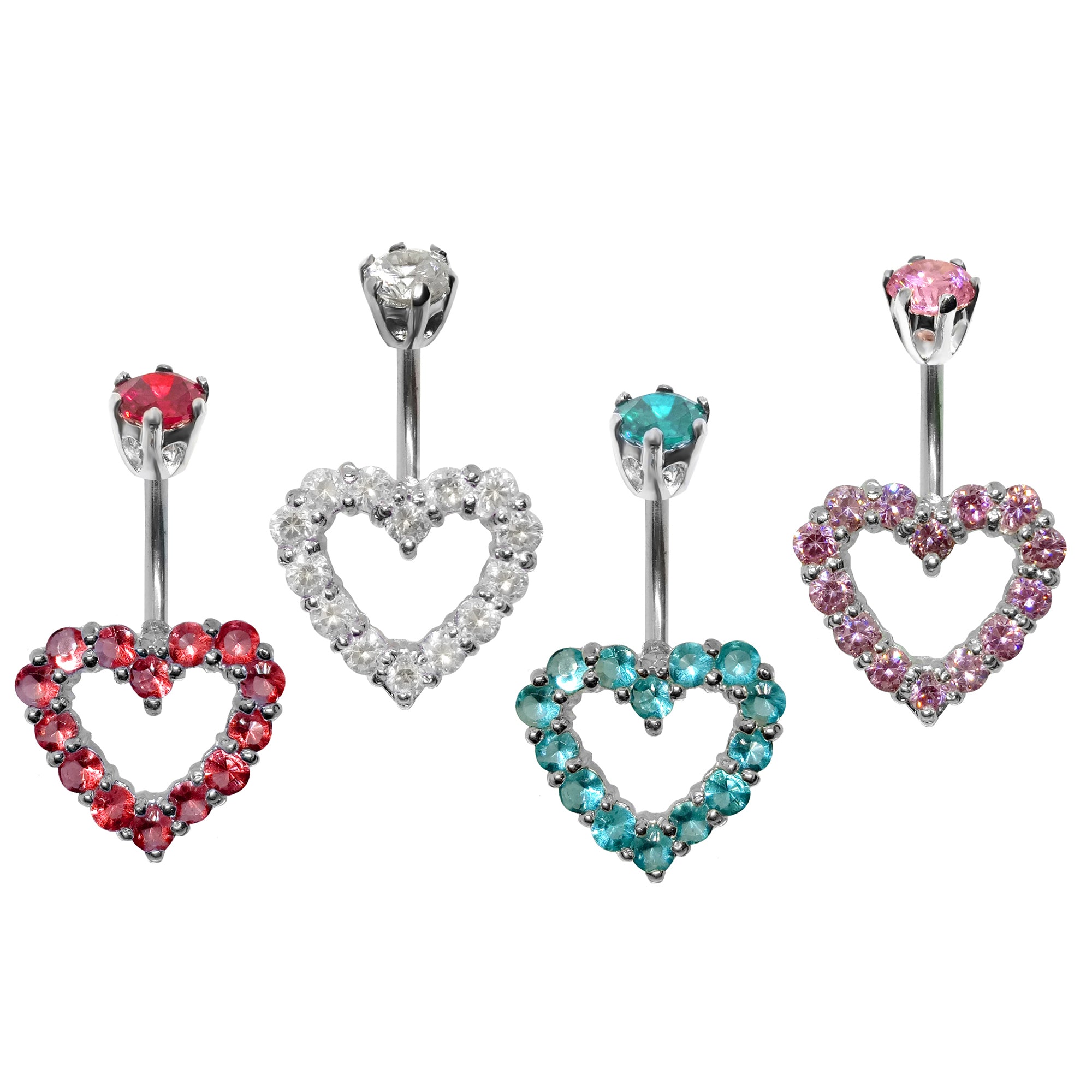 Heart Shape Silver Belly Button Ring - Jewelry Crafted Top Ball We use Quality Austrian cut Crystals - Navel Jewelry - 14g (1.6mm)
