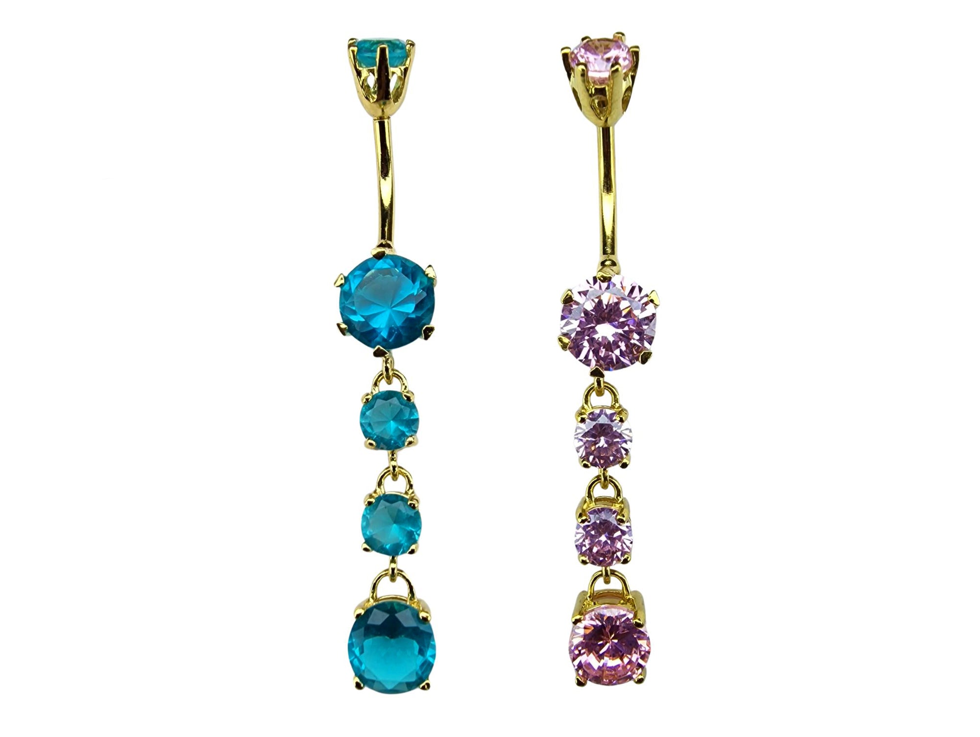Round Drop Dangle Belly Ring with CZ Crystals -Gold Plated Silver Belly Bars 14G length is 10mm