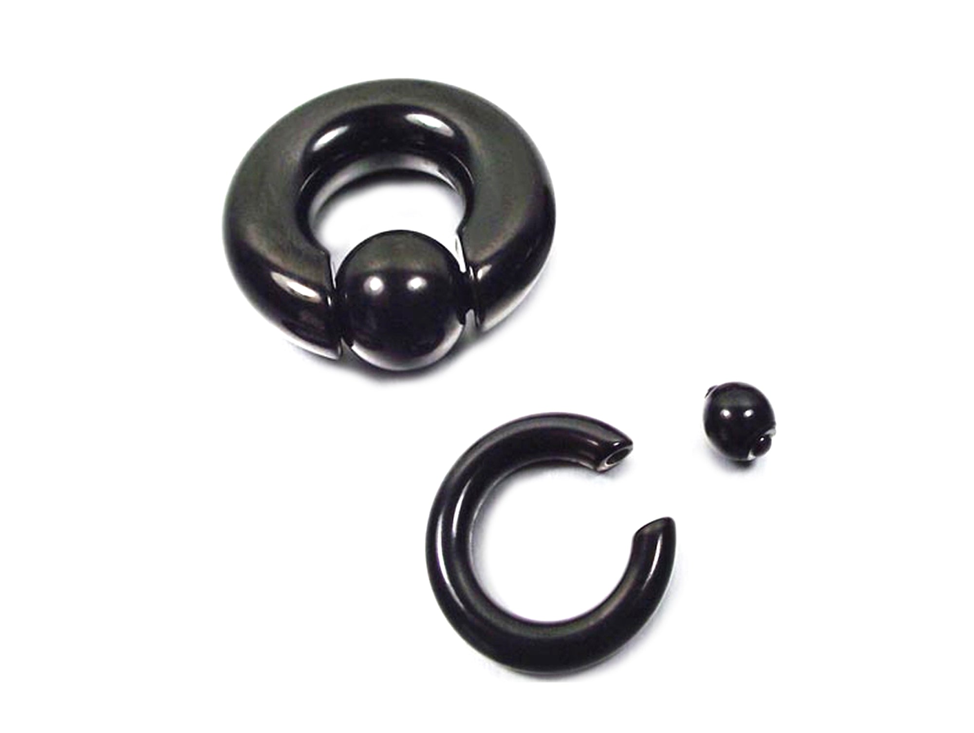 Black PA Ring, Prince Albert Piercing Jewelry - Captive Bead Hoop 18G to 00G with Spring Ball Closure - 1pc each order