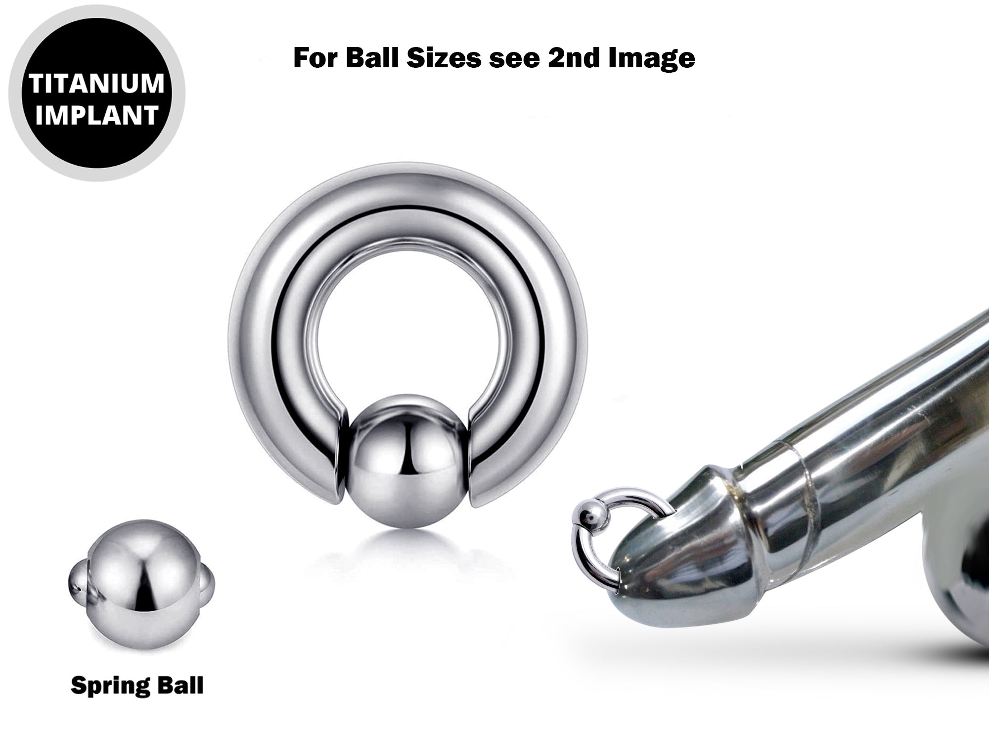 Titanium PA Ring, Captive Prince Albert Ring Piercing with Spring Ball 8g to 00g Big Gauge Genital Piercing Jewelry Also Piercing for Septum