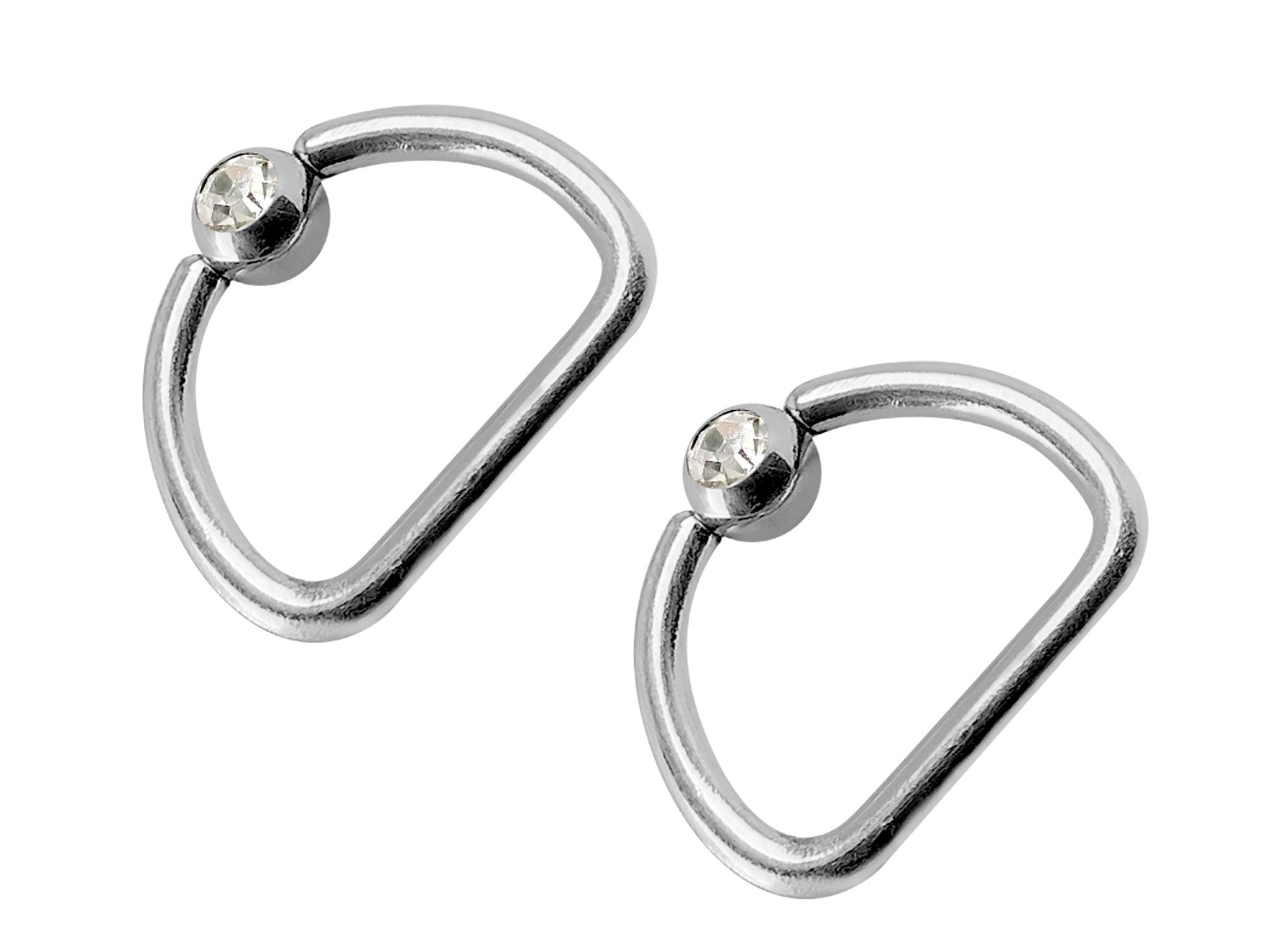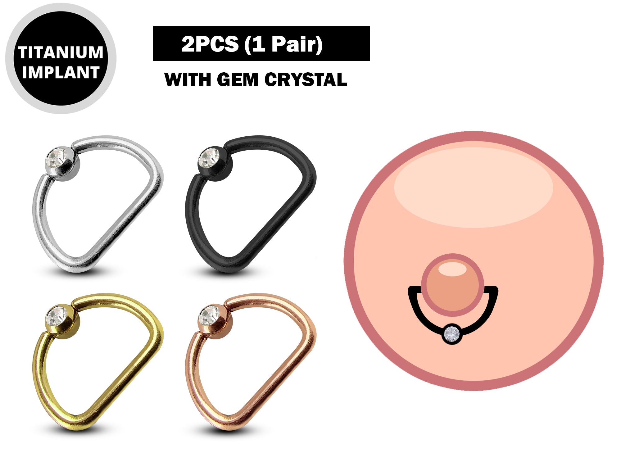 Titanium Nipple D-Ring, Nipple Ring Jewelry Ball Hoops with CZ Crystal, Captive Ring - 2pcs - Body Piercing Also for Daith, Septum, Eyebrow