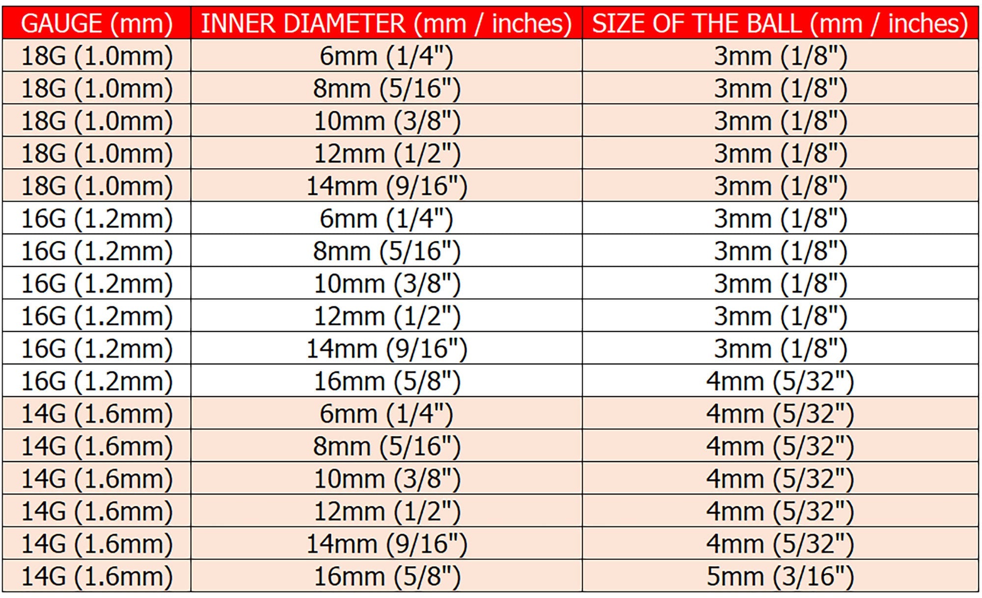 Ball Size: 3mm for 18G, 16G - 4mm for 14G