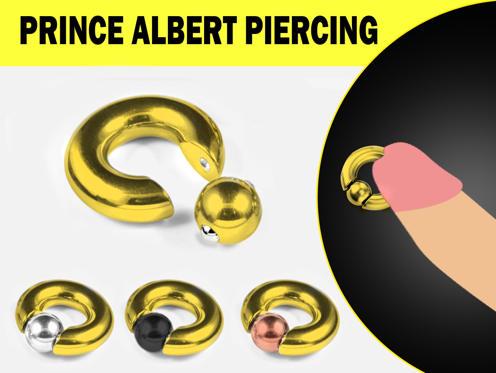Titanium Gold Captive Ball Hoop, Prince Albert Piercing, BCR PA Rings with Custom Ball Colors 2G to 00G Nose Jewelry - 1pc each order