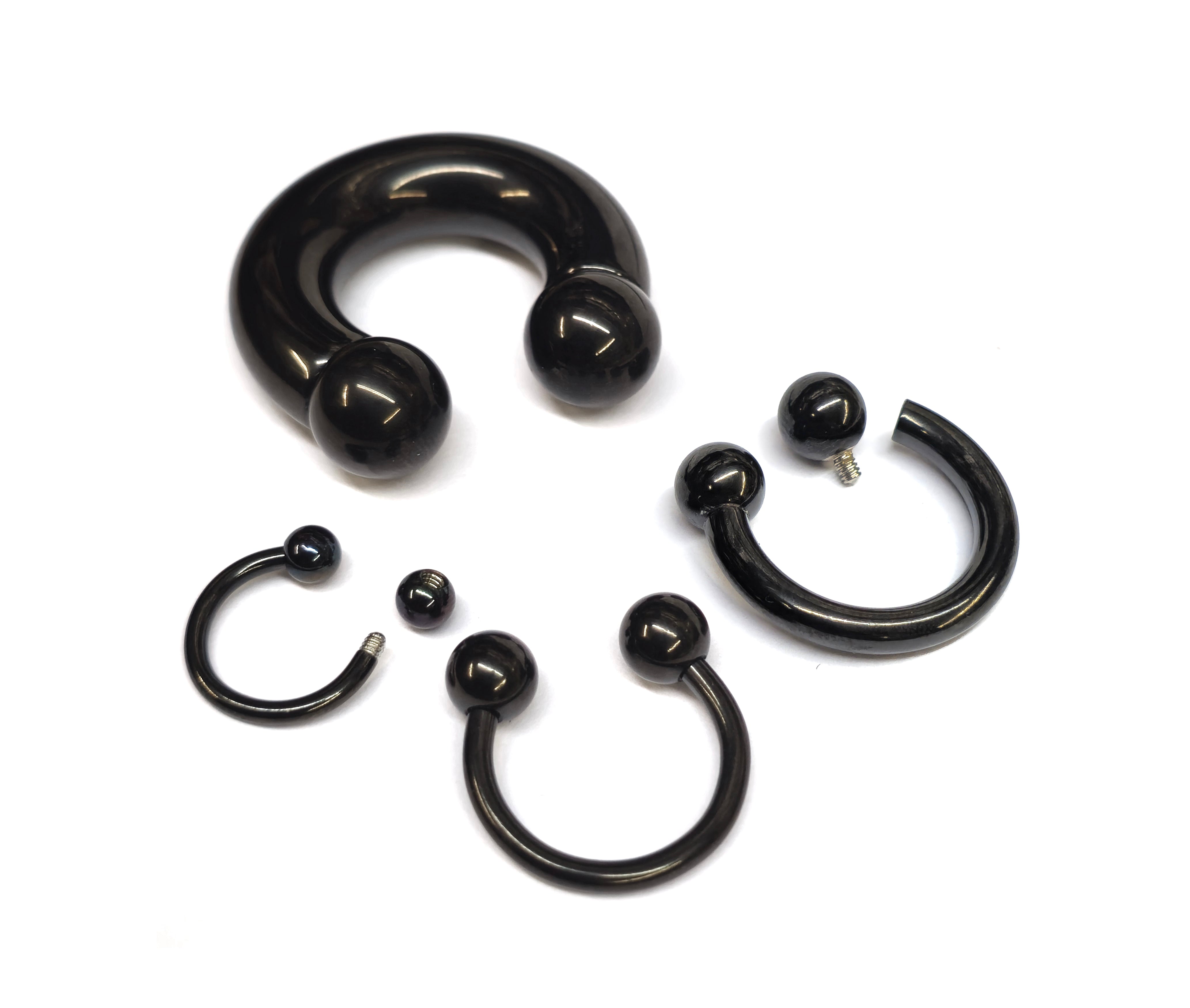 Titanium Horseshoe Ring Piercing 18g to 00g Black Septum Jewelry Bull Piercing Also for Nipple, PA Ring, Lips Internal / External Threaded