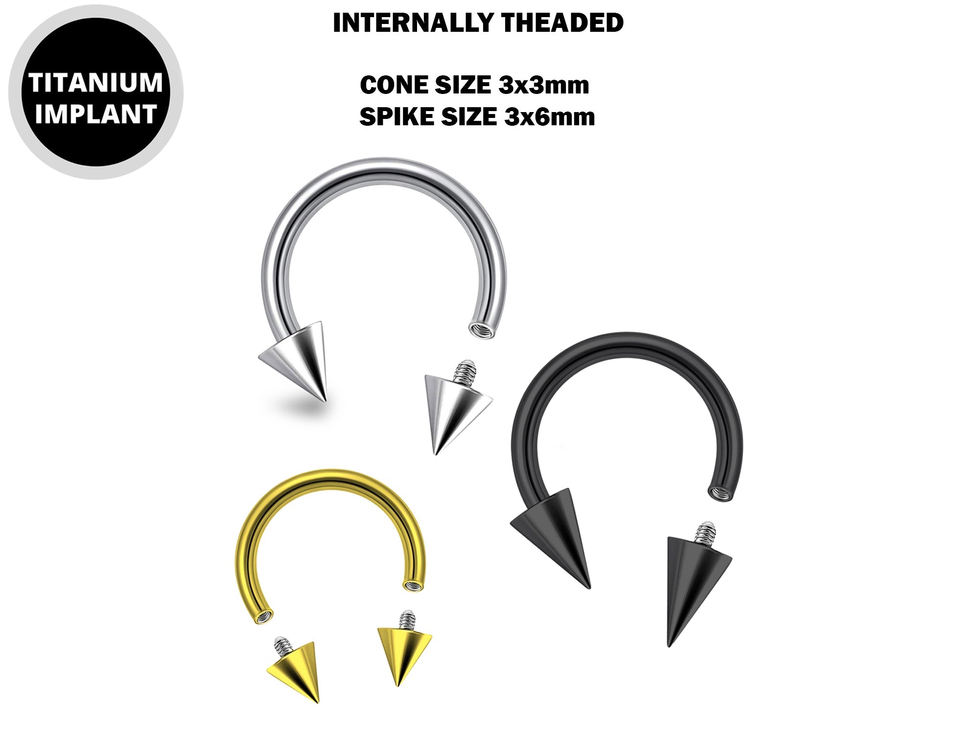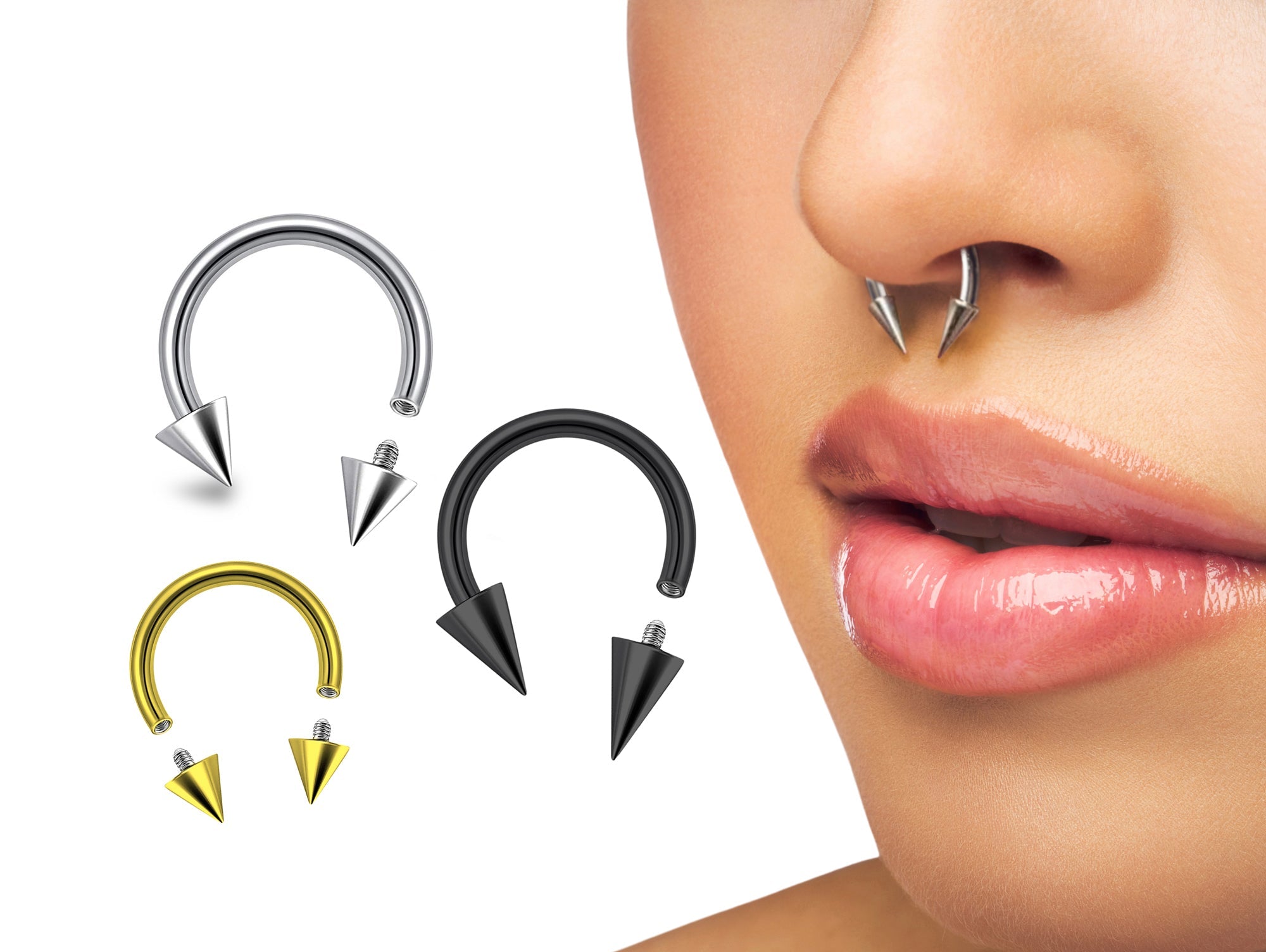 Titanium Internally Threaded Spike Horseshoe Ring Piercing 16g 14Gg Septum Jewelry Bull Piercing Also for Nipple, PA Ring and Lip Jewelry