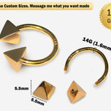 14K Gold Pyramid Cone Septum Horseshoe Barbell, Septum ring, Lip Piercing - 14G Body Jewellery Gold Nose Ring