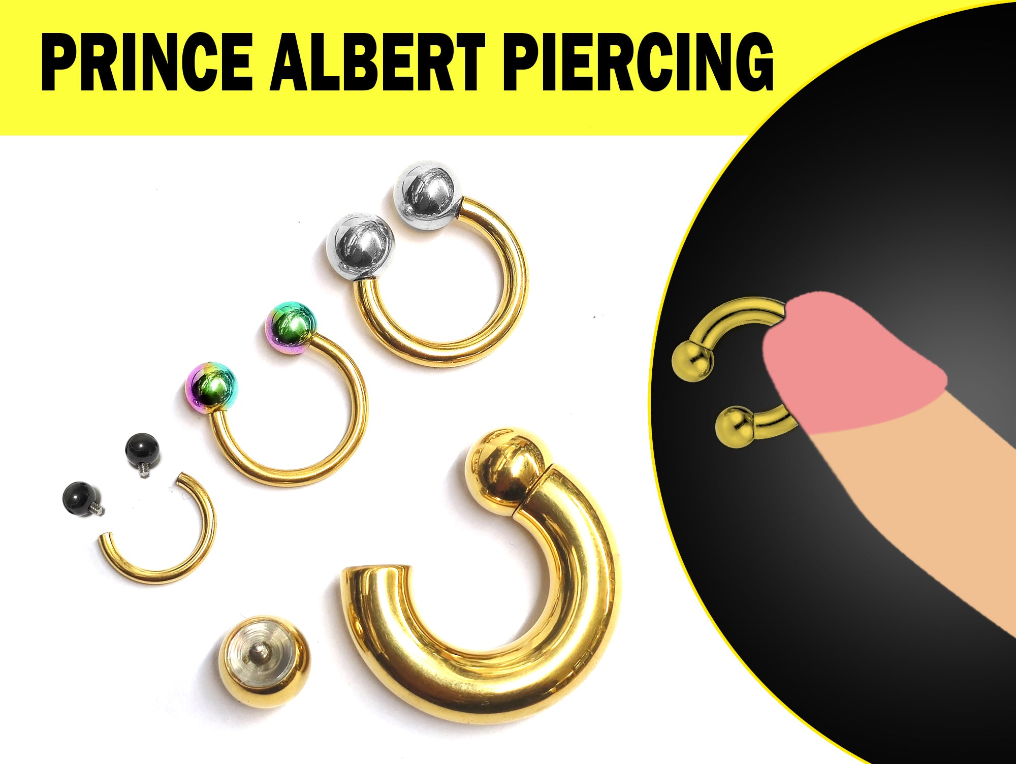 Gold Prince Albert Jewelry Horseshoe PA Piercing with Internally Threaded Custom Ball Circular Barbell
