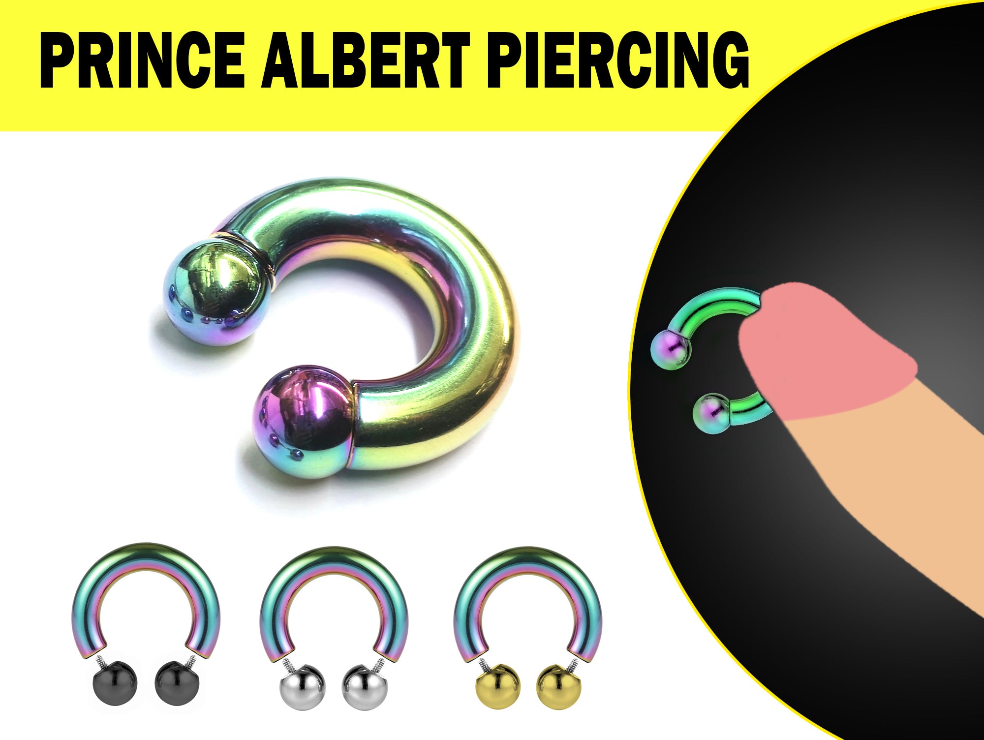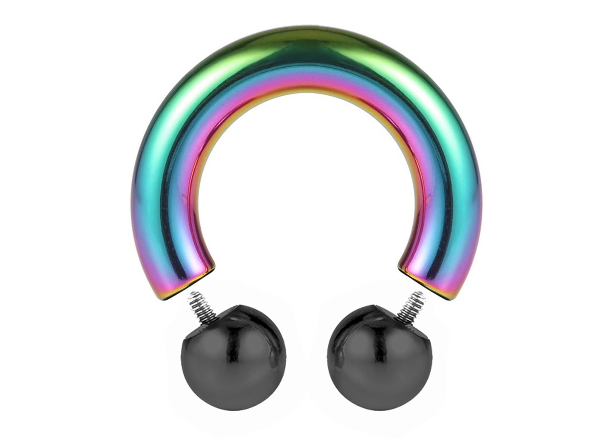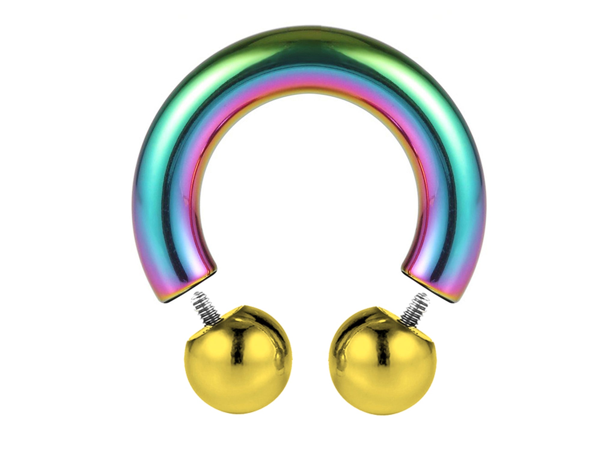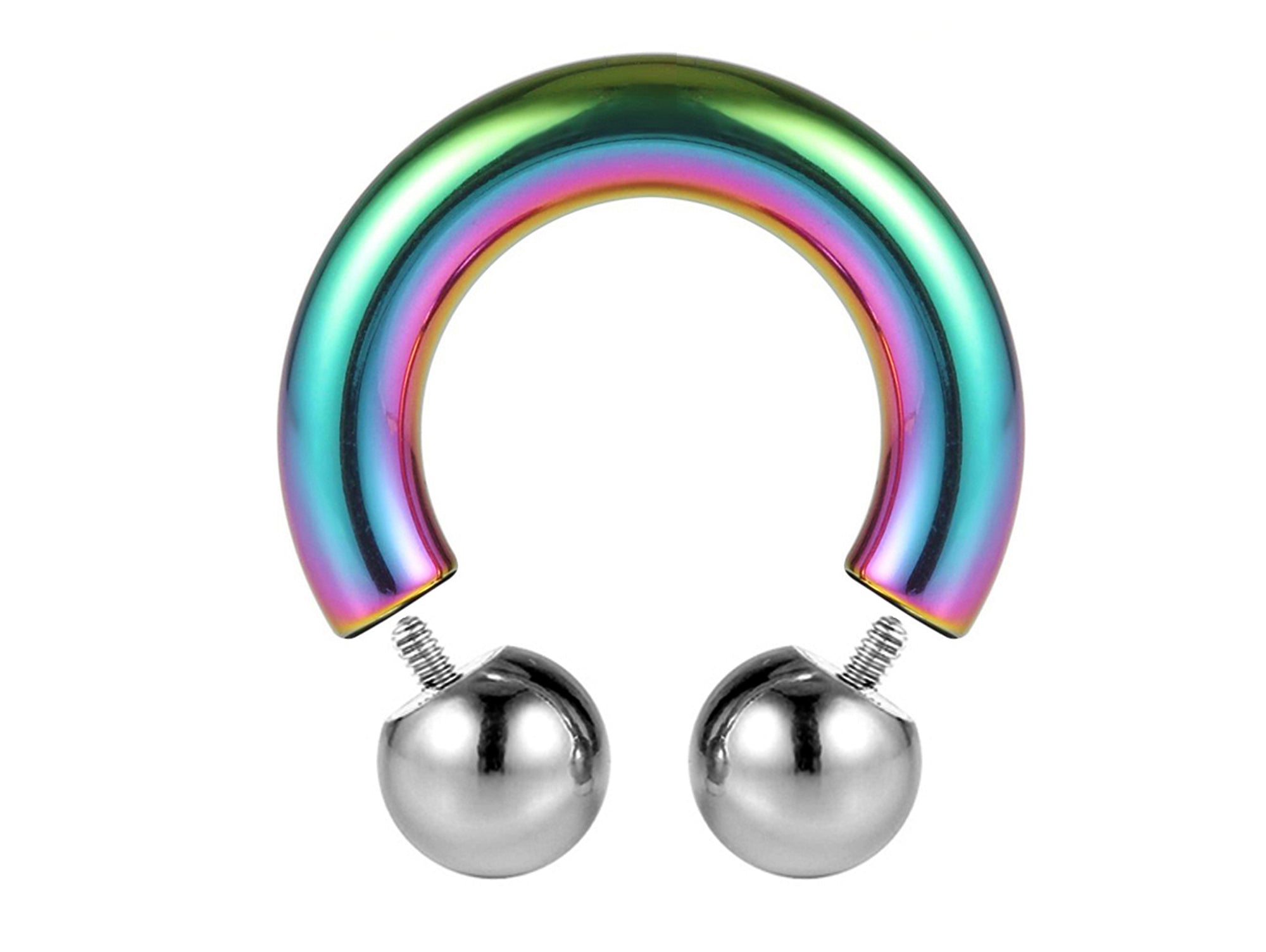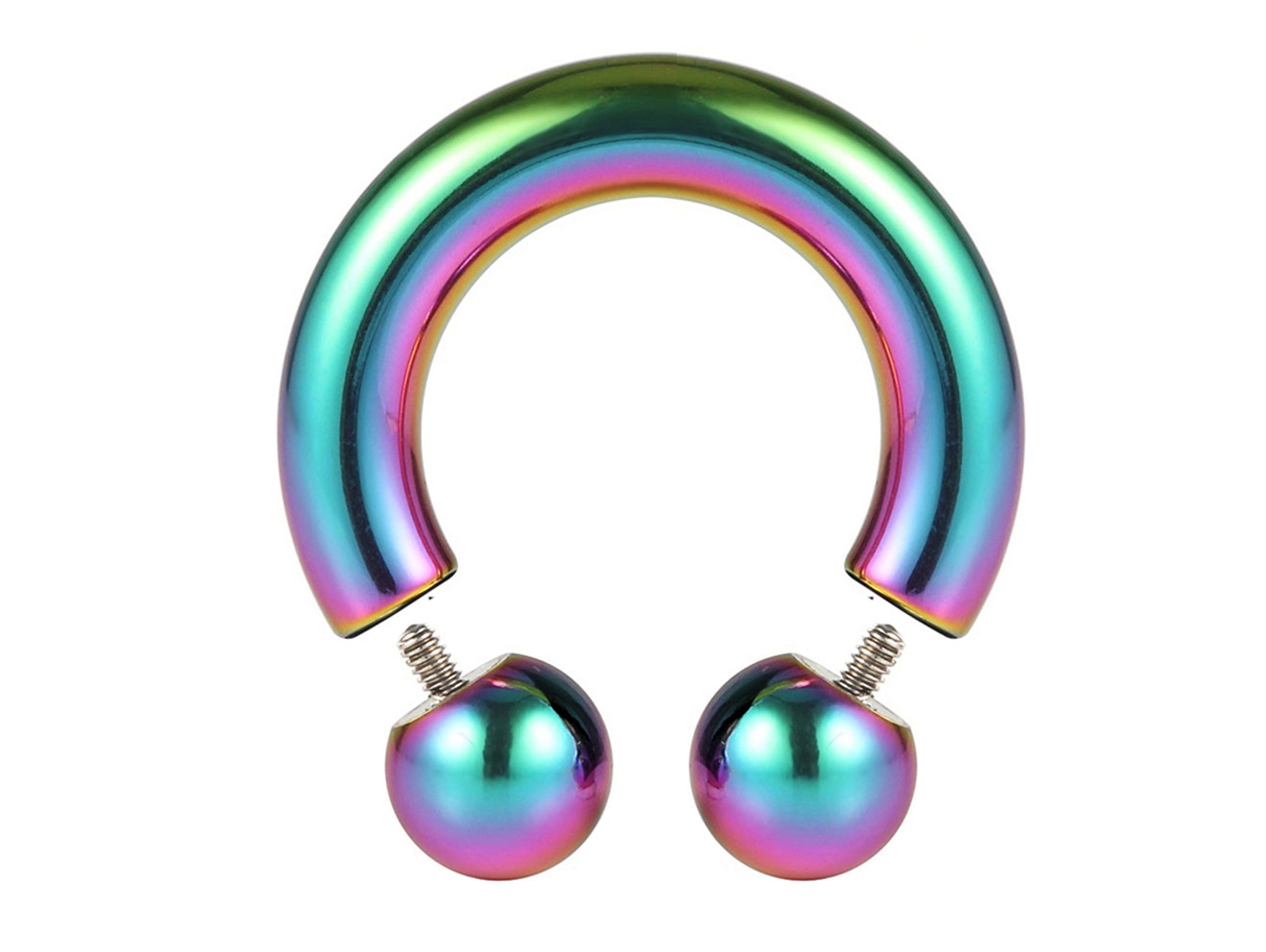 Rainbow Prince Albert Jewelry Horseshoe PA Ring with Internally Threaded Custom Ball Circular Barbell Piercing