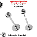 14K White Gold Internal Labret Lip Piercing -16G 14G - Body Jewelry for Tragus, Cartilage - Hand Made