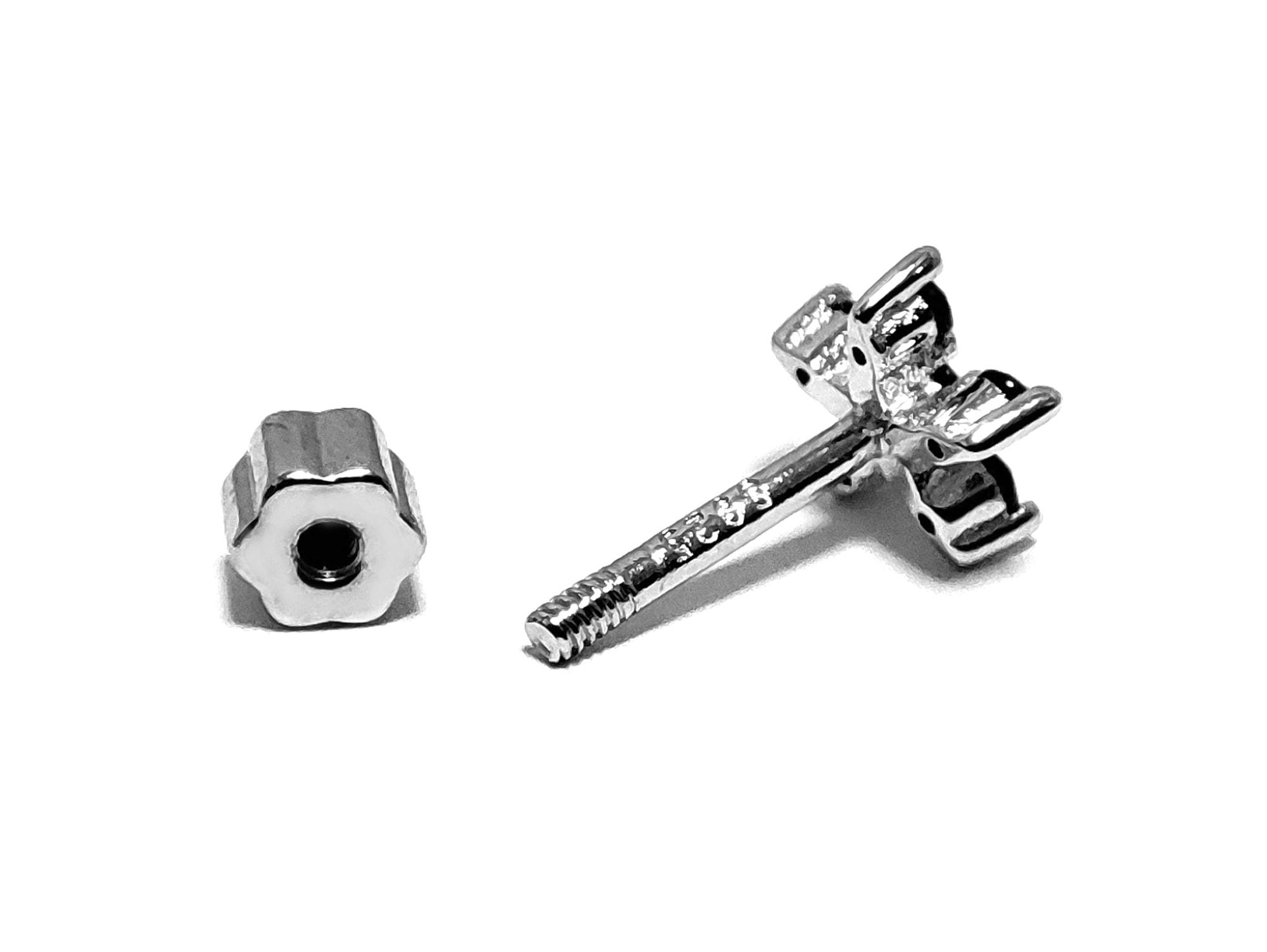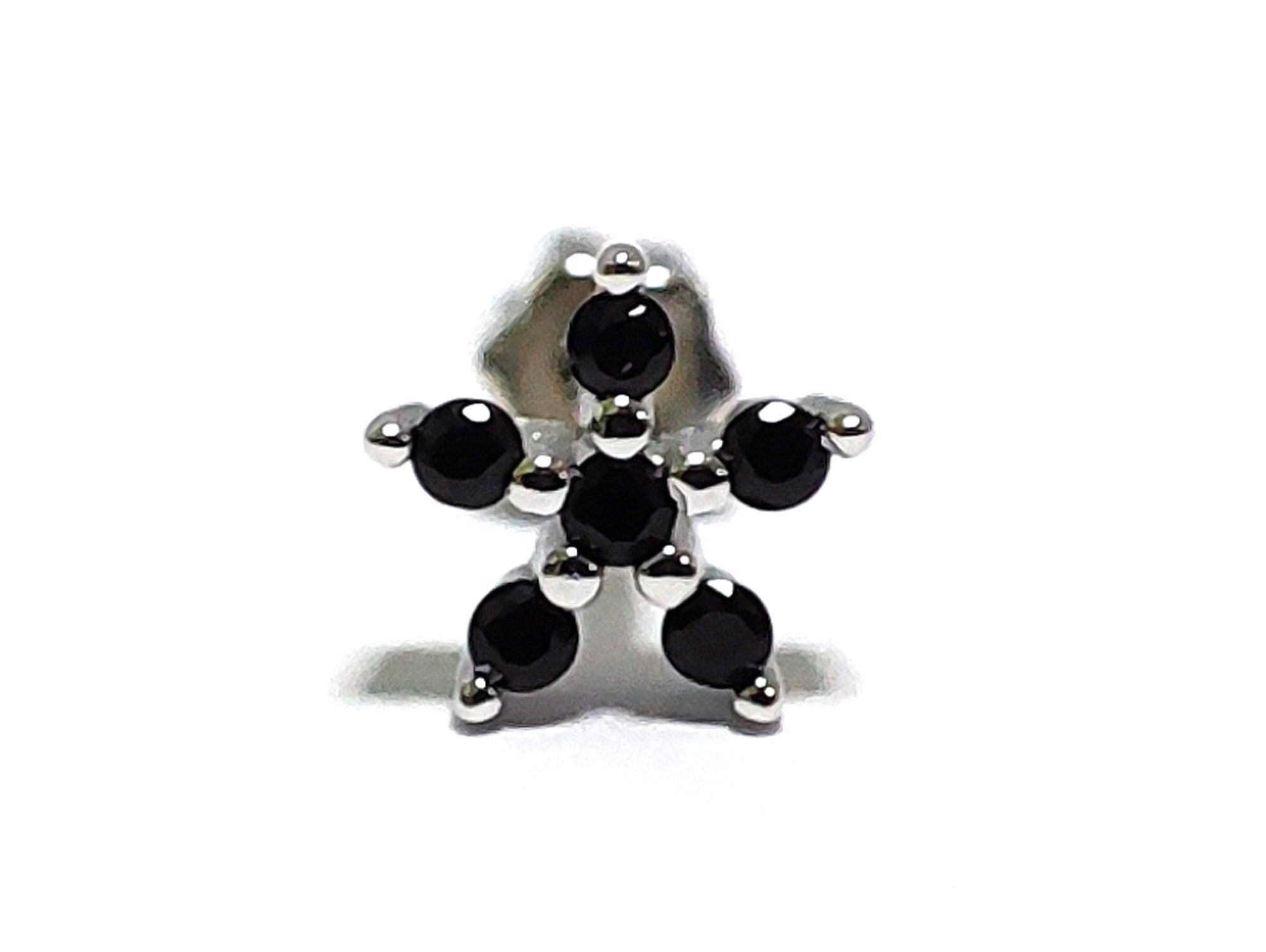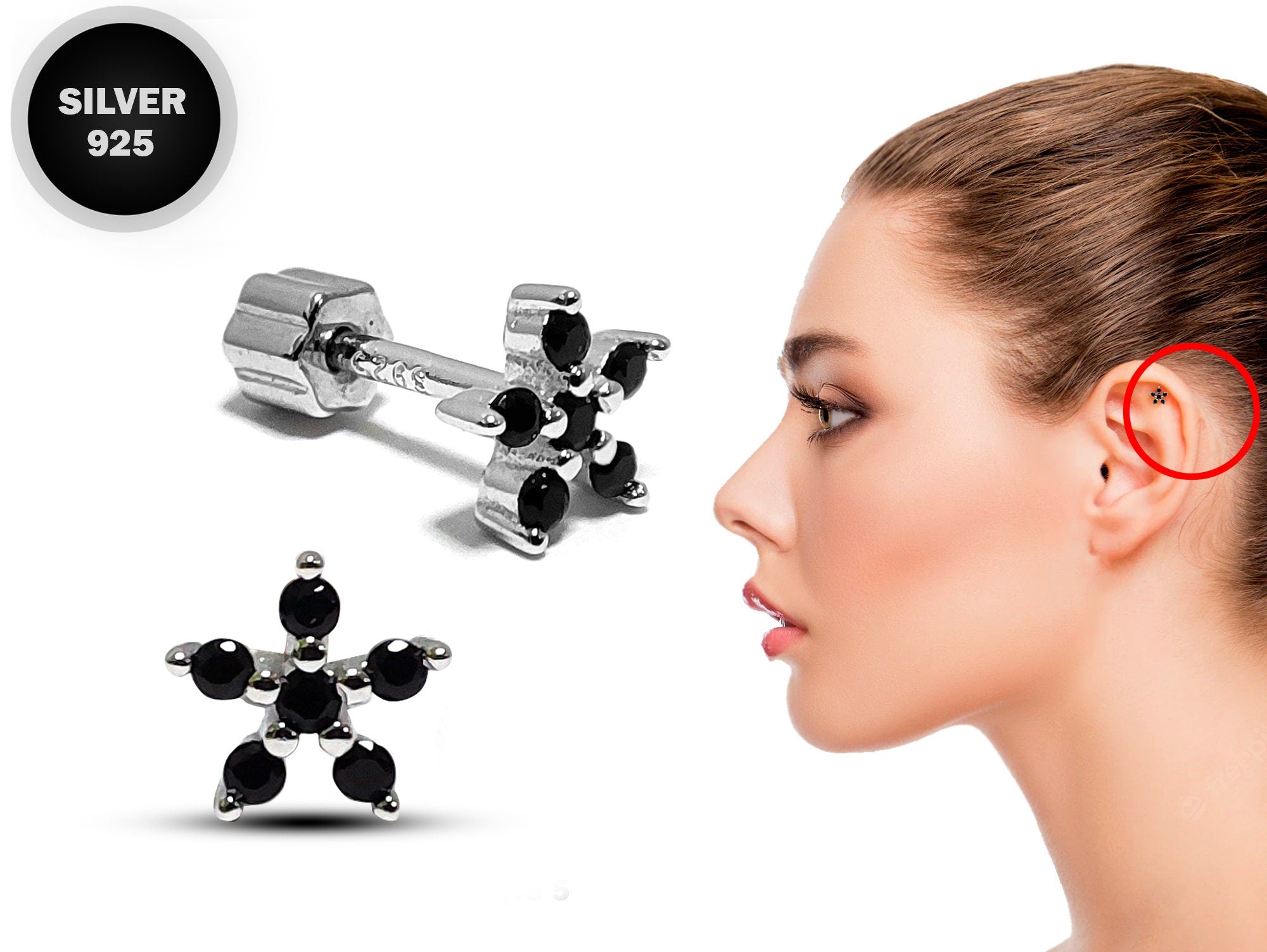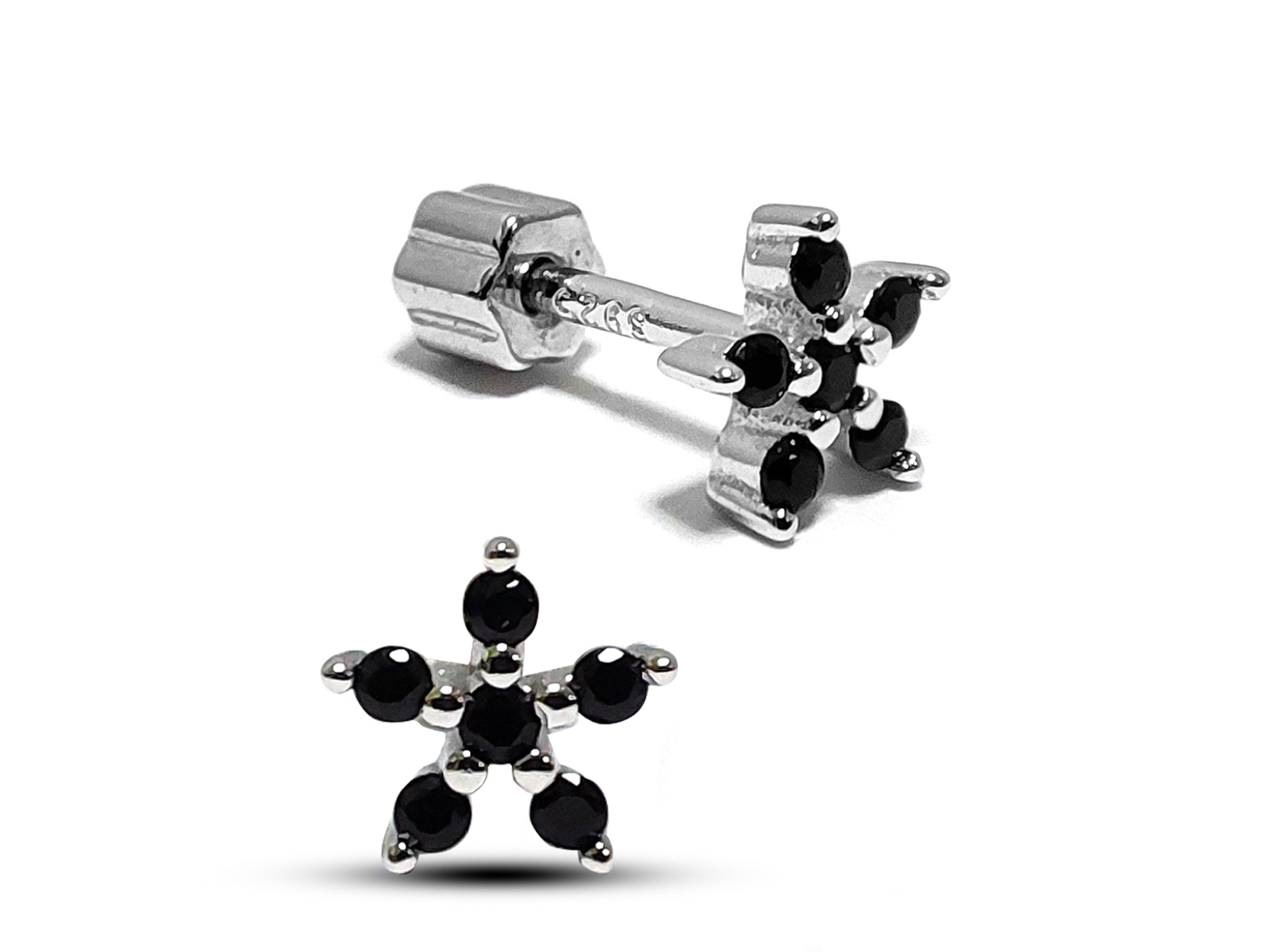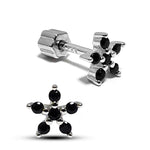 Silver Flower Cartilage Earring, Helix Piercing with CZ Jet black Crystals - 20G Ear Barbell Piercing Screw Back- Helix Piercing Jewellery
