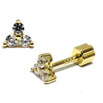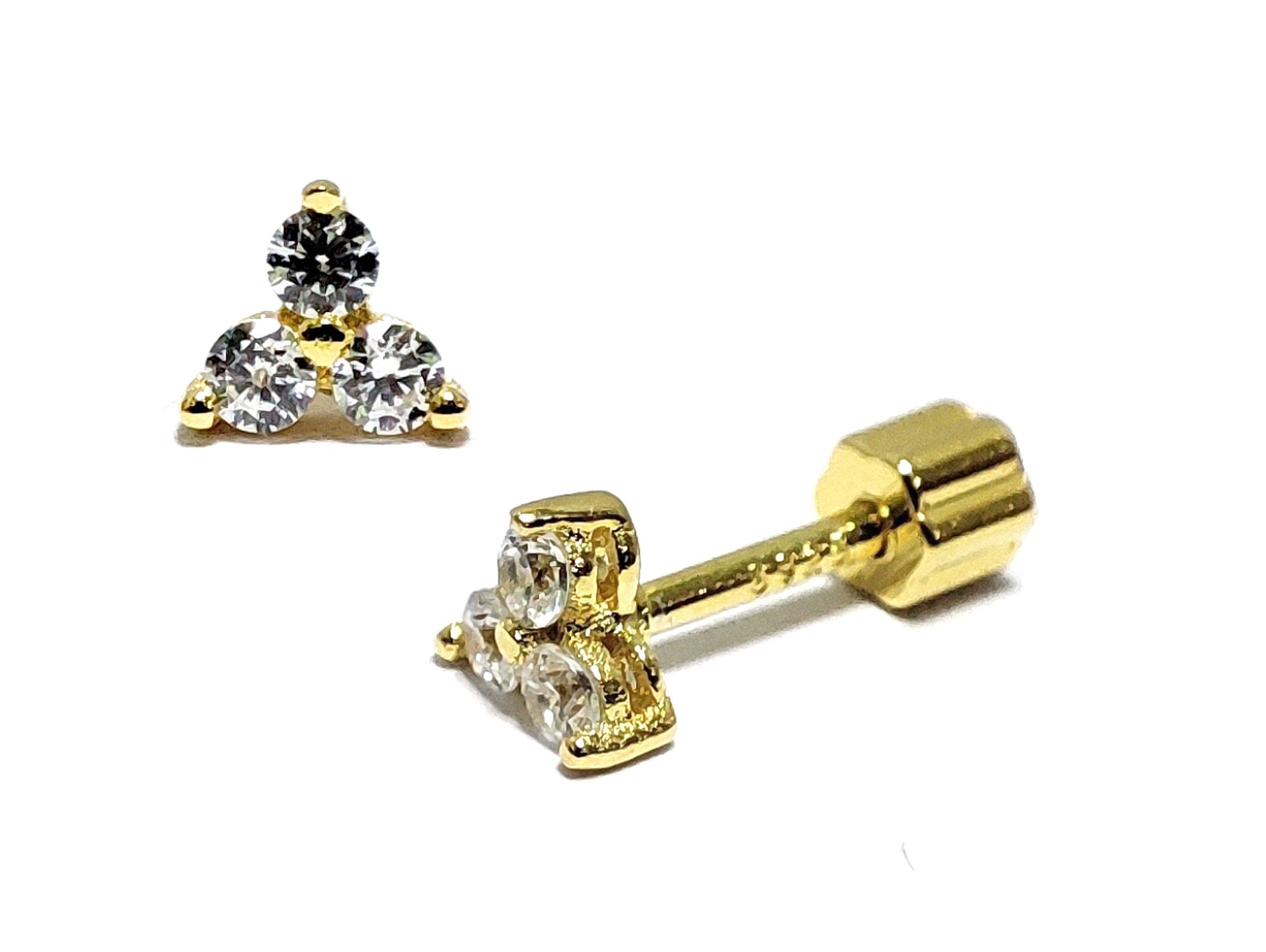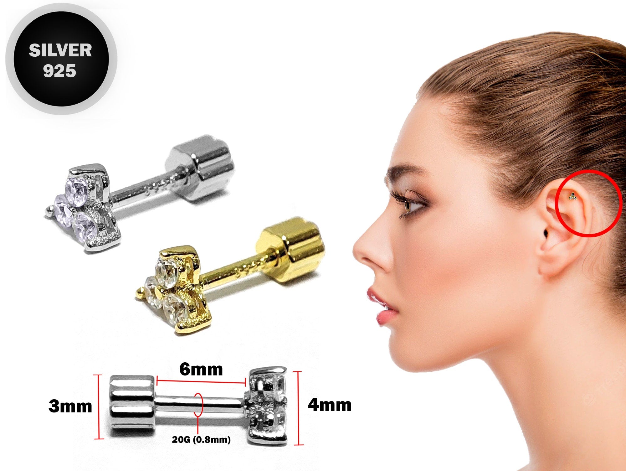 Silver Helix Flower Earring, Cartilage Piercing with CZ Clear Crystals- 20G Ear Piercing Screw Back- Helix Piercing Jewellery