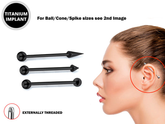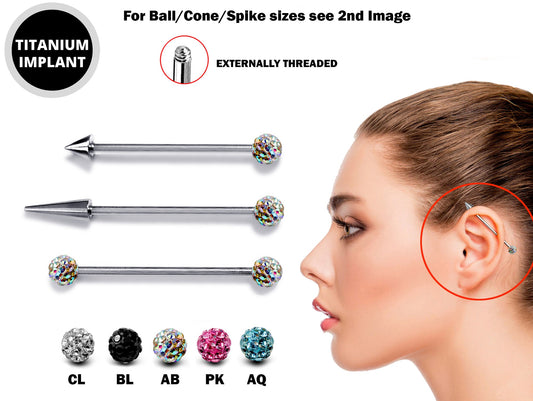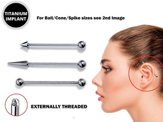 Ball/Cone/Spike Upper Ear Industrial Barbell Piercing Studs - Titanium Implant 16g 14g Barbell Earrings Straight Barbell Externally Threaded