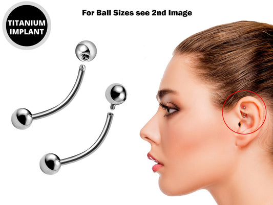 Titanium Rook Piercing Jewelry Earring - 18g 16g 14g Curved Bar External or Internally Threaded Body Piercing, Ear Piercing, Rook Earring