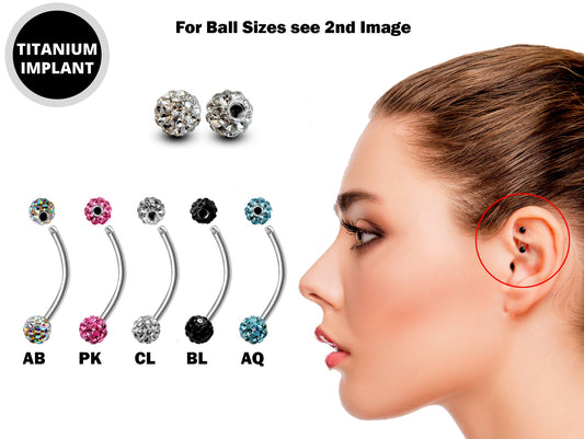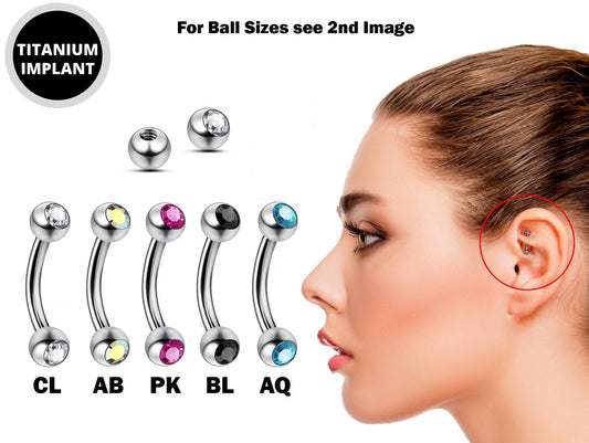 Titanium Rook Piercing Jewelry Earring with Gem Ball Crystal - 18g 16g 14g Curved Bar Body Piercing, Ear Piercing, Rook Earring