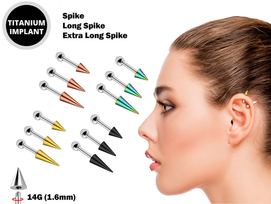 Cartilage Piercing, Spike Helix Earring with Colorful Top Spike, Long Spike & Extra Long Spike Barbell Earring - Titanium 14G (1.6mm)
