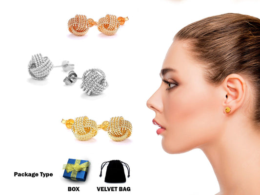 Silver Stud Knot Earrings, Round Earrings - Beautiful Love Knot Design - Packed in a Gift Box or Velvet Bag