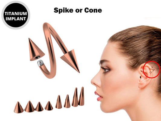 Rose Gold Spike Spiral Helix Piercing - 18g 16g 14g Titanium Twisted Barbell Ear Piercing, Cartilage Ring, Lip Ring, Belly Ring