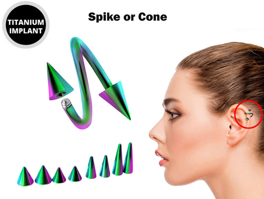 Rainbow Spike Spiral Helix Piercing - 18g 16g 14g Titanium Twisted Barbell Ear Piercing, Cartilage Ring, Lip Ring, Belly Ring