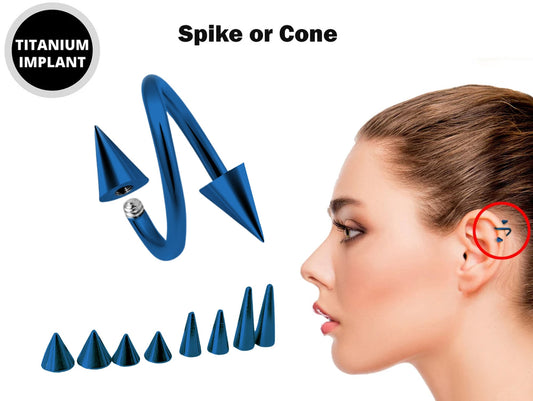 Spike Spiral Helix Piercing - 18g 16g 14g Titanium Teal Blue Twisted Barbell Ear Piercing, Cartilage Ring, Lip Ring, Belly Ring