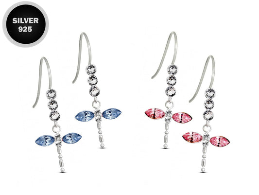 Silver Drop Dragonfly Earrings with CZ Crystals - Ear lobe Hook Earrings Add a touch of refined sparkle to your ears.
