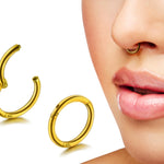 14K Gold Septum Nose Clicker Ring, Lip Piercing Hinged Ring - 20G, 16G Clicker Hoops Body Jewellery Ring - Solid Gold Piercings