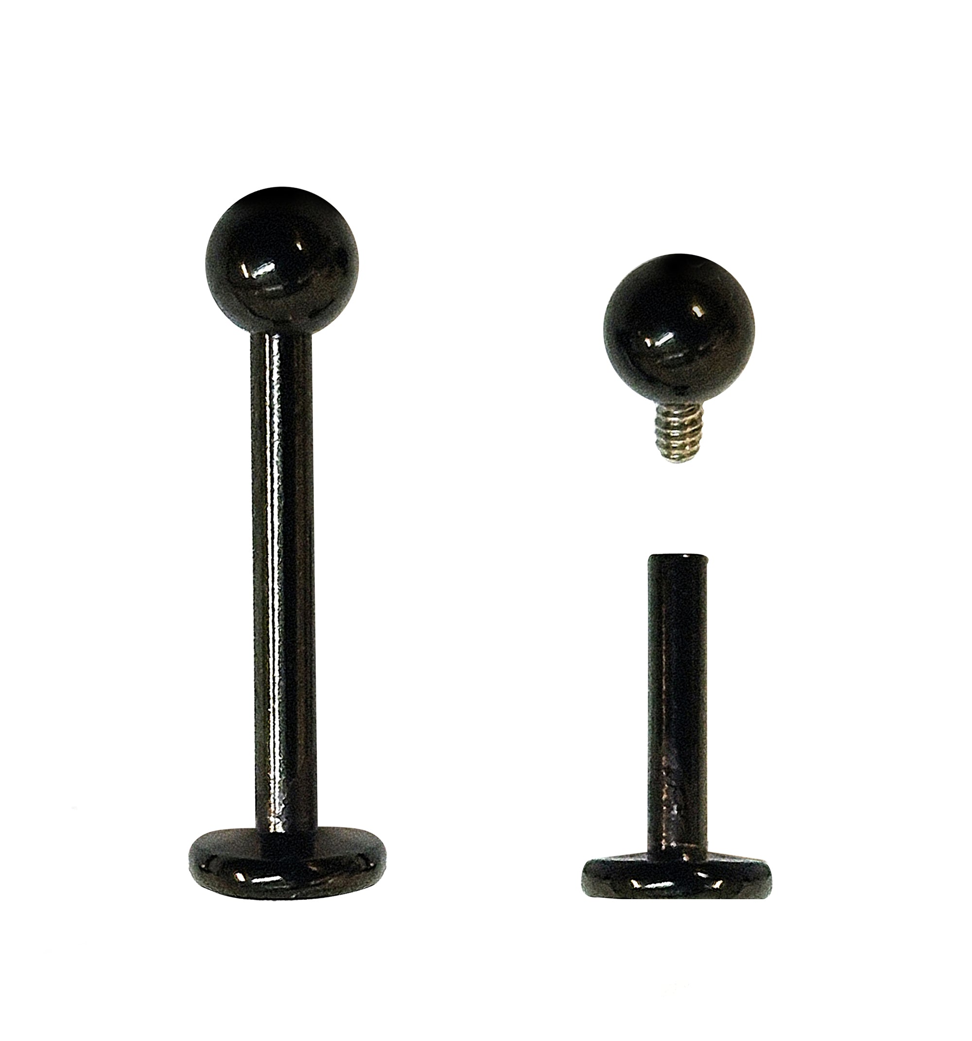Titanium Black Labret Stud Piercing 16G 14G Internally Threaded Lip Jewellery, Lip Ring, Tragus Earring - 6mm to 12mm