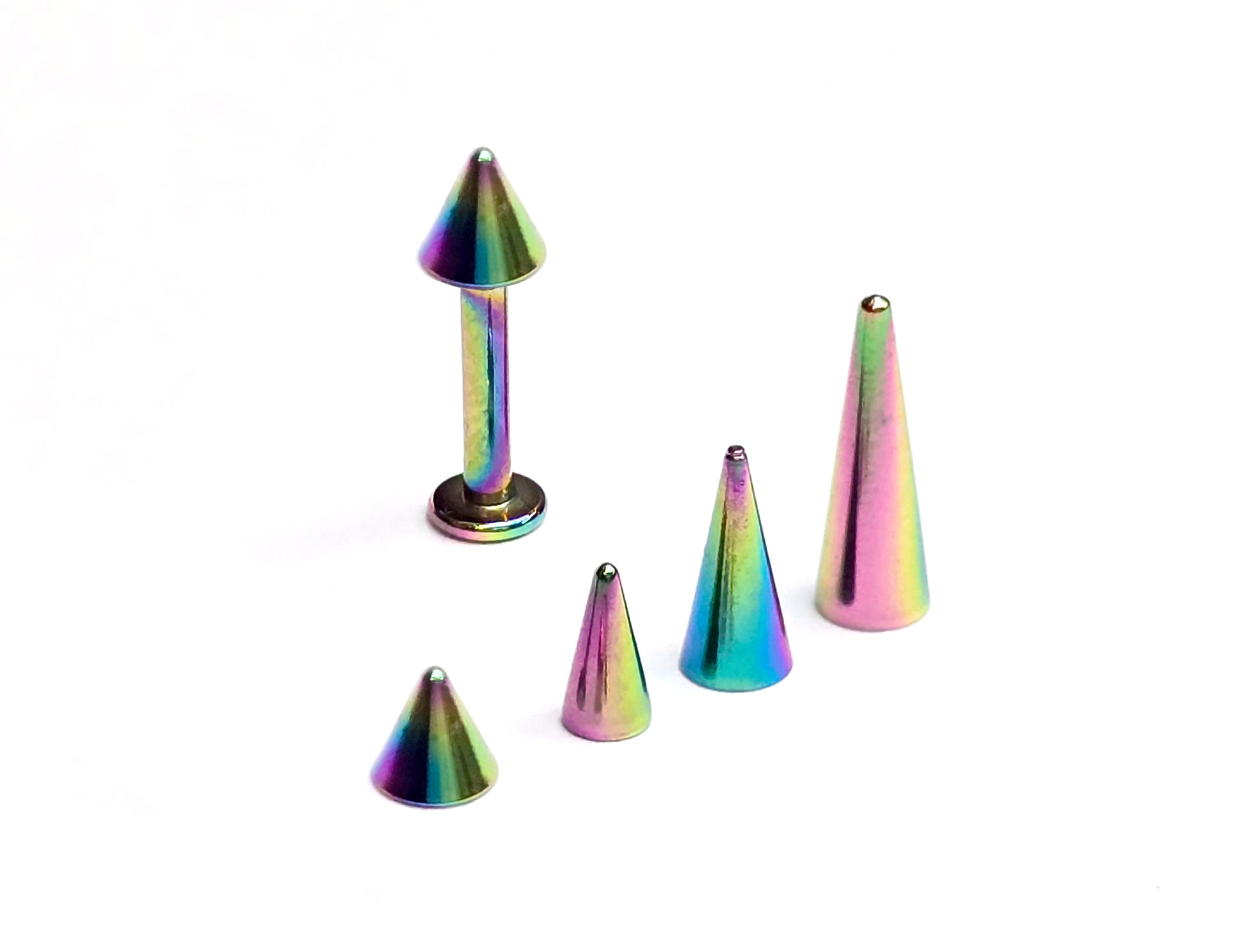 Rainbow Spike Labret Stud Piercing Jewelry - 18g 16g 14g Titanium Lip Piercing Also for Tragus Helix Cartilage Madonna Medusa Side Labret