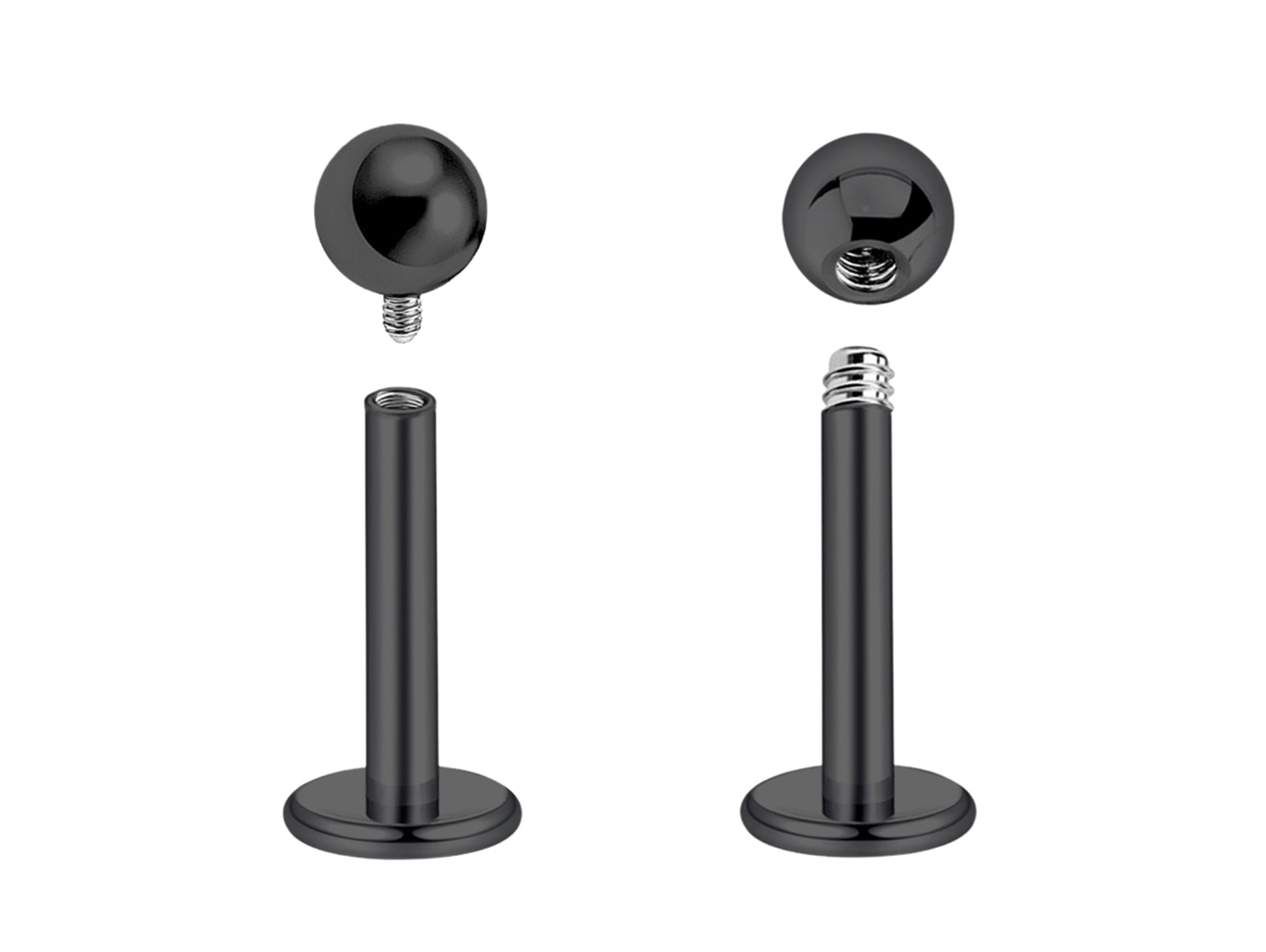 Titanium Black Labret Stud Piercing 18g 16g 14g Lip Piercing External or Internally Threaded for Tragus Helix Cartilage, Medusa Labret